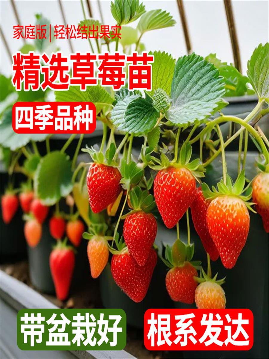 Plántulas de Fresa En Maceta Fruta de Cuatro Estaciones Árboles Frutales de Balcón Comestible Perla Negra Roja Yan Ningyu Jiu Xiang Plántulas de Fresa