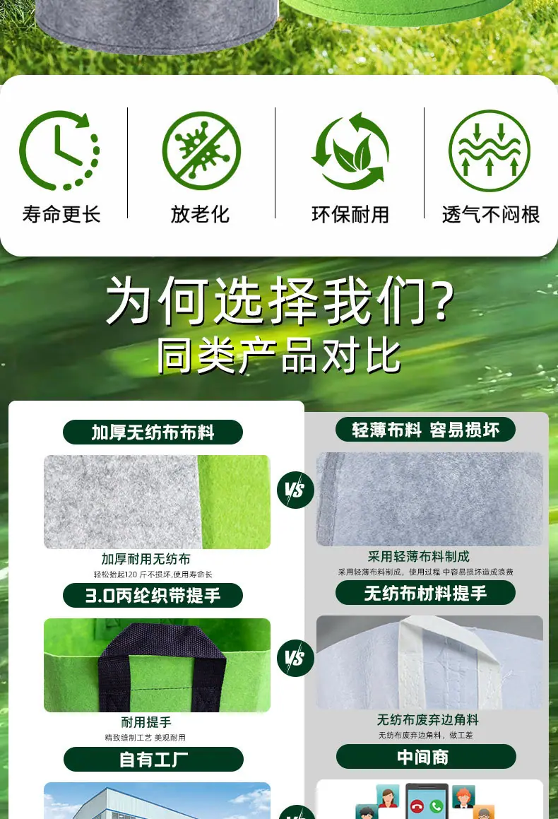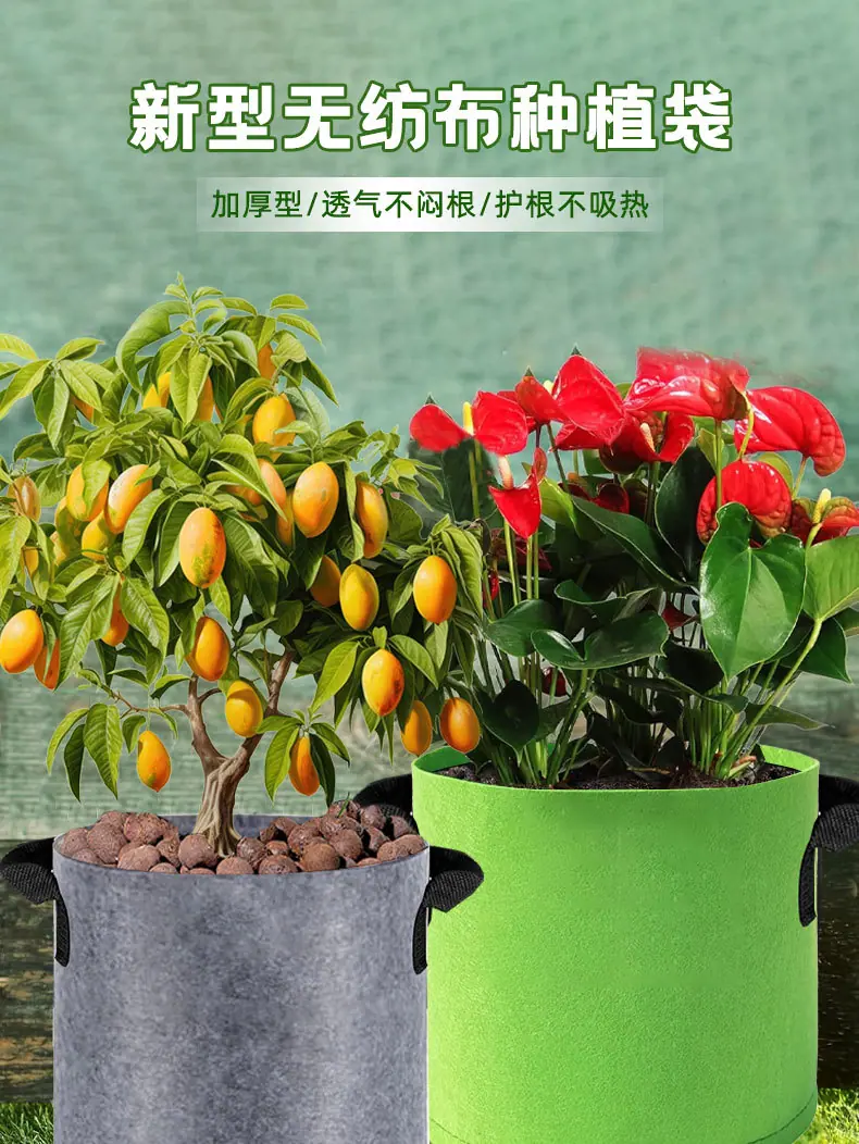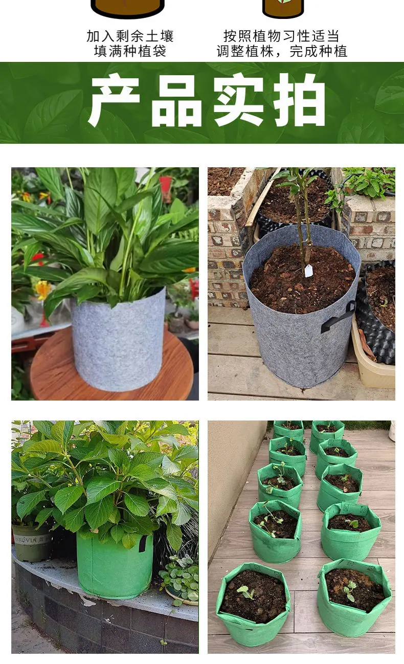 Bolsas de Plantación de Fieltro No Tejido Personalizadas por el Fabricante Bolsas de Plantación de Belleza de Fieltro Bolsas de Cultivo Verde Gris Planta Autoabsorbente de Agua
