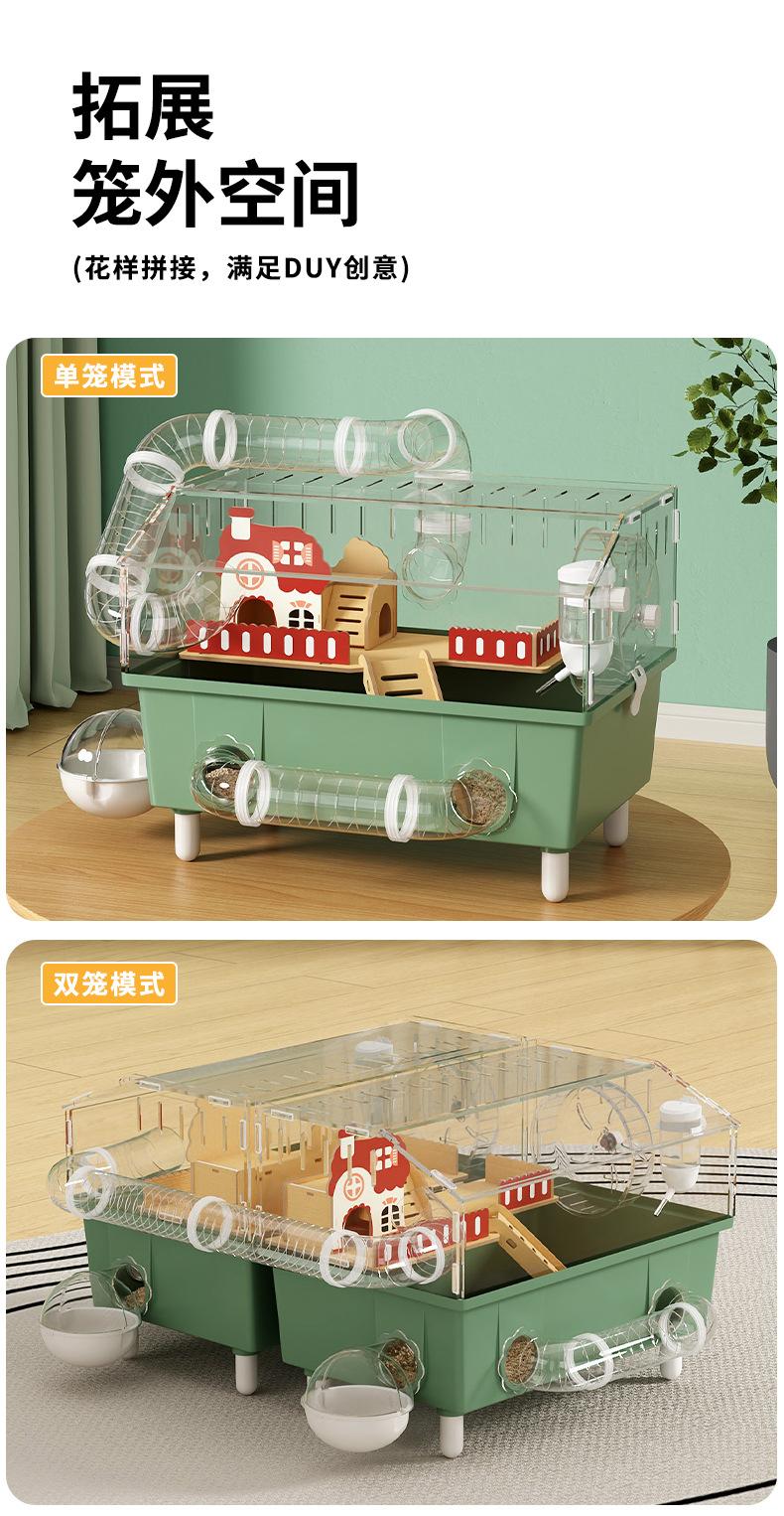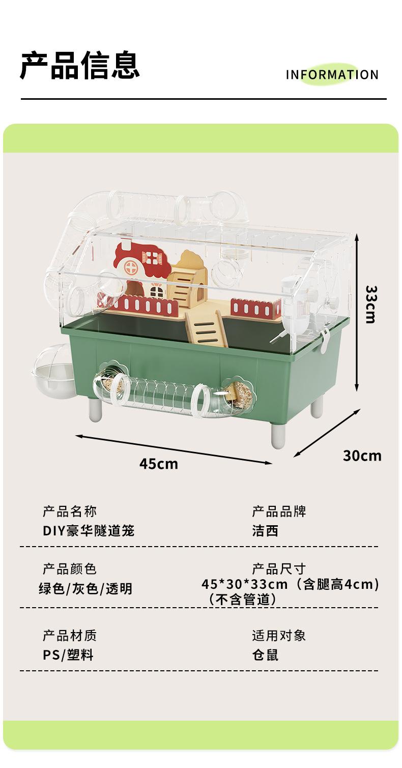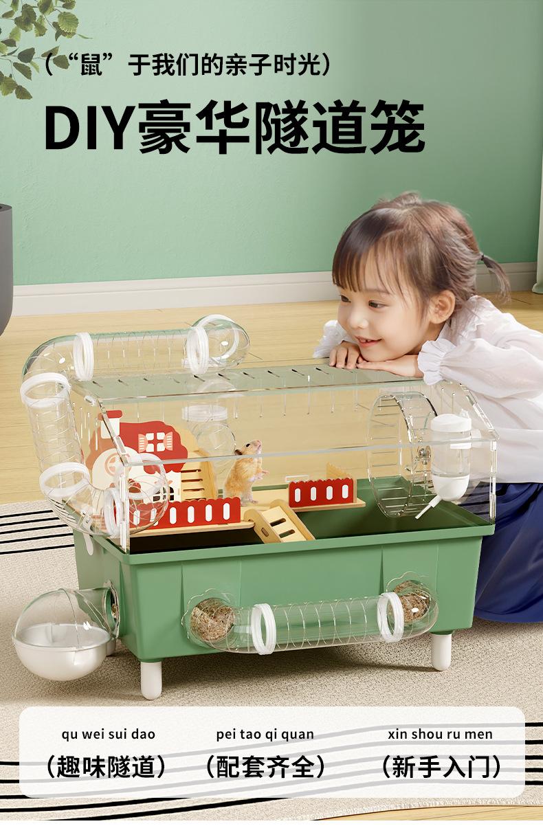 Acrylic tunnel hamster cage luxury model--green bottom basin