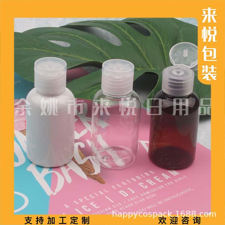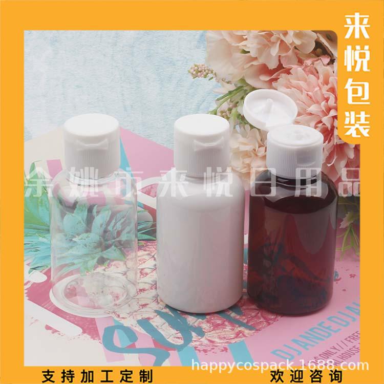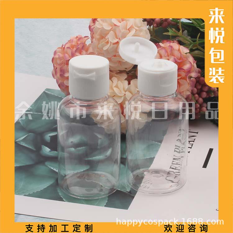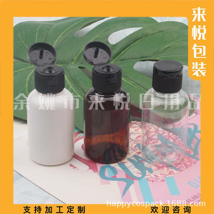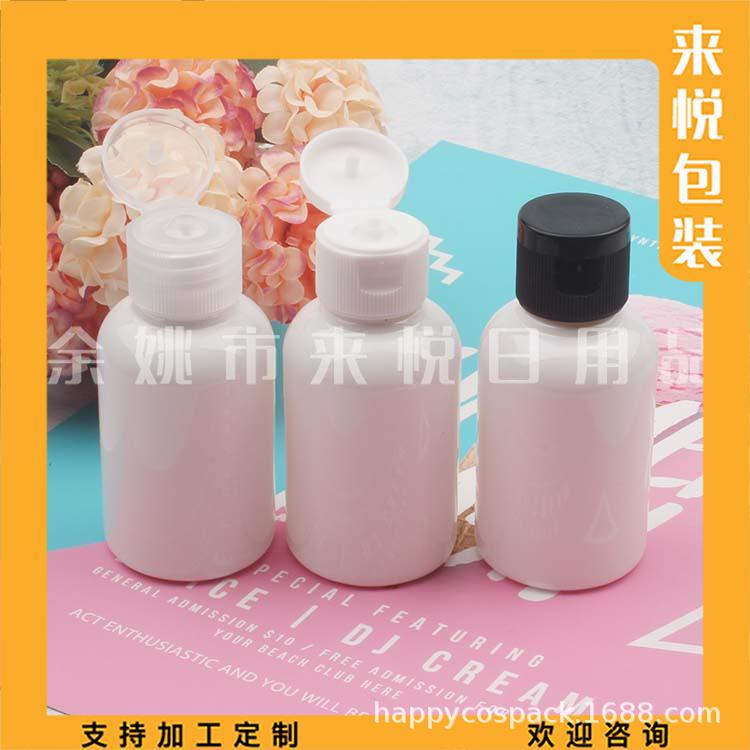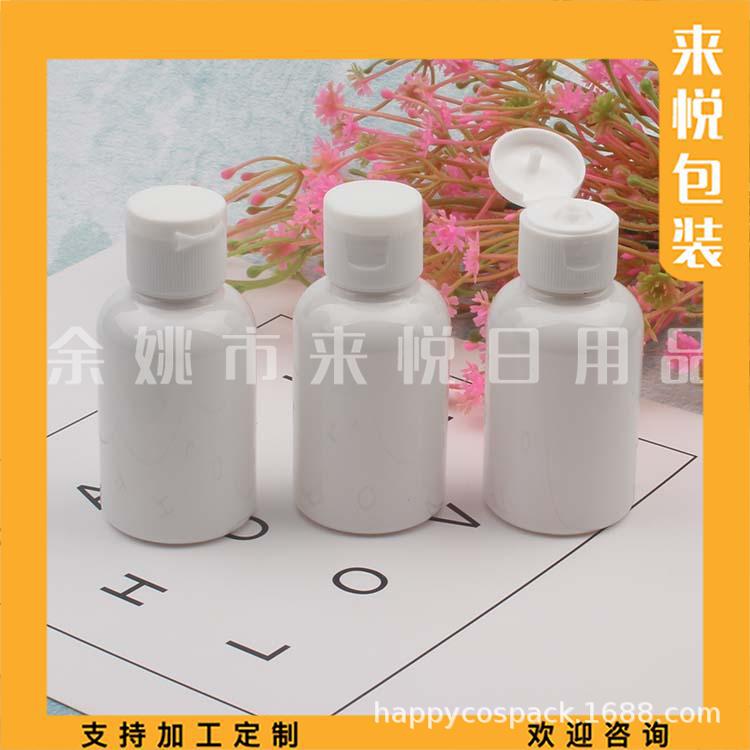 Botella de loción de 50 ml corta y gorda con tapa abatible, botella dispensadora de jabón de manos blanca, botella de embalaje de muestra de limpiador facial, botella para cebo de pesca