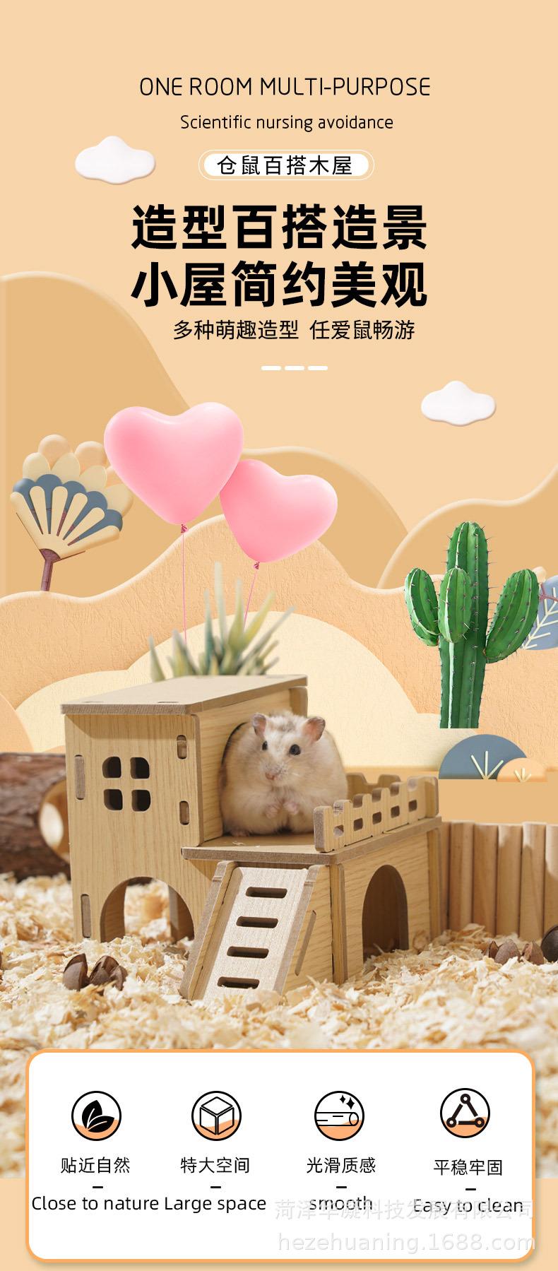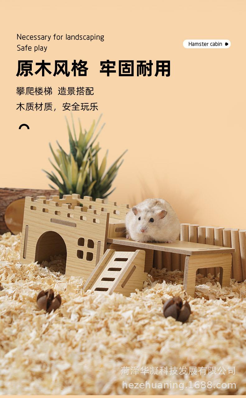 Compra Casa de Escape para Hámster Paisaje Interior Suministros para Mascotas Juguete Casa Pequeña Decoración de Madera Oso Dorado Dos Recámaras al por mayor en Joom.pro