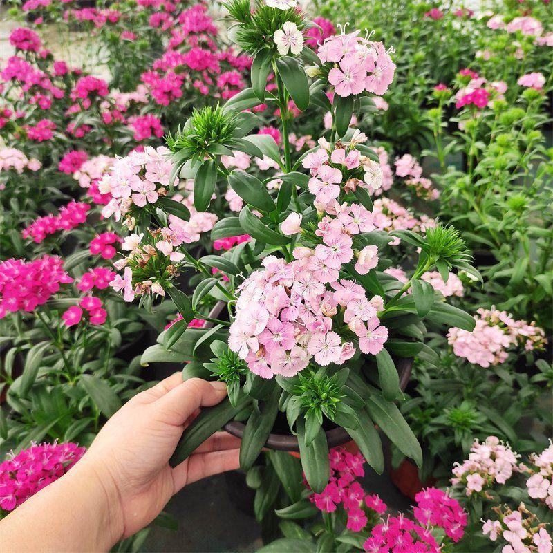 Clavelina con capullos florales plántulas en maceta plantación de jardín floración en las cuatro estaciones resistente al frío fácil de cultivar mar de flores paisajismo proyecto de enverdecimiento