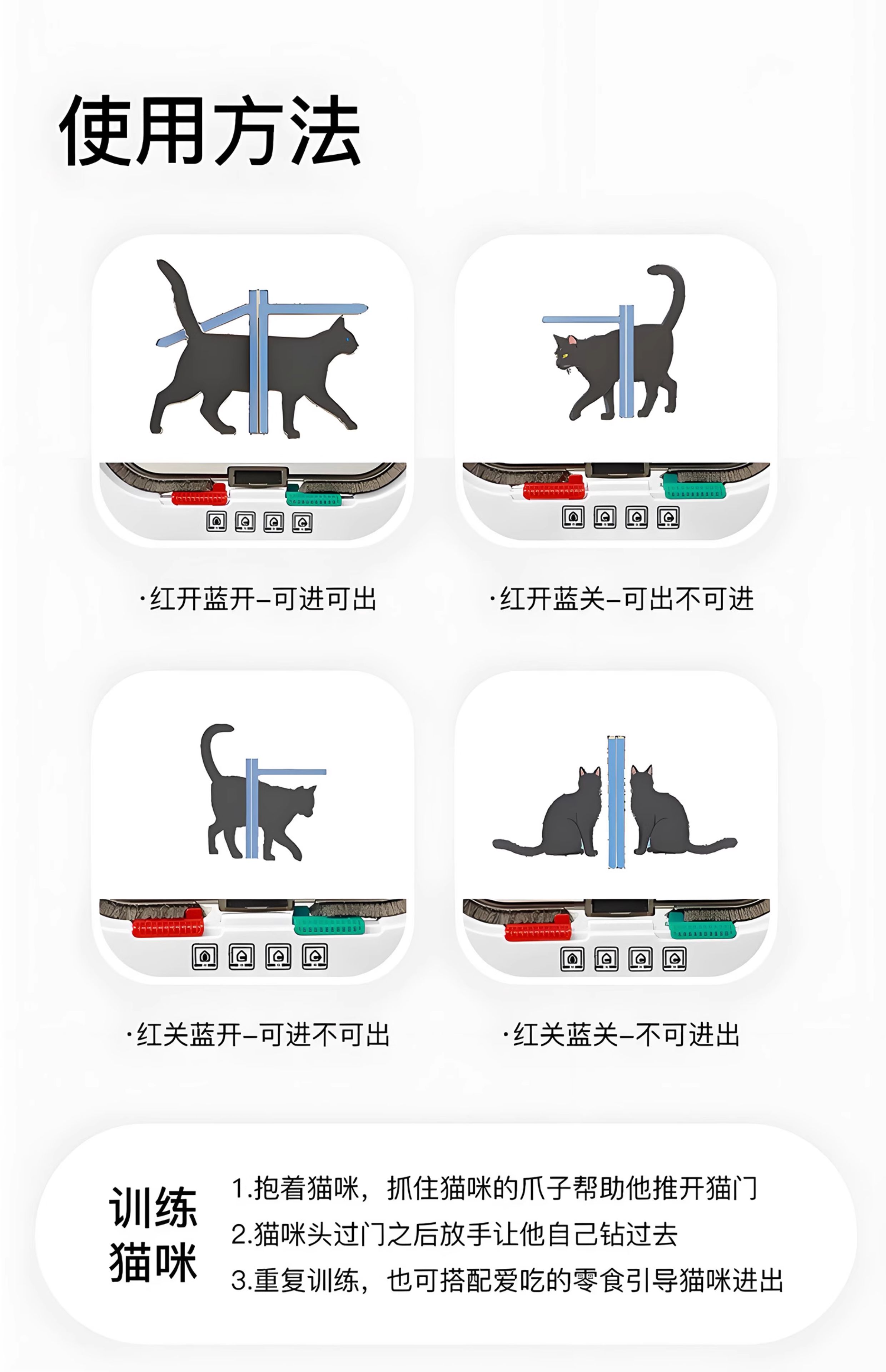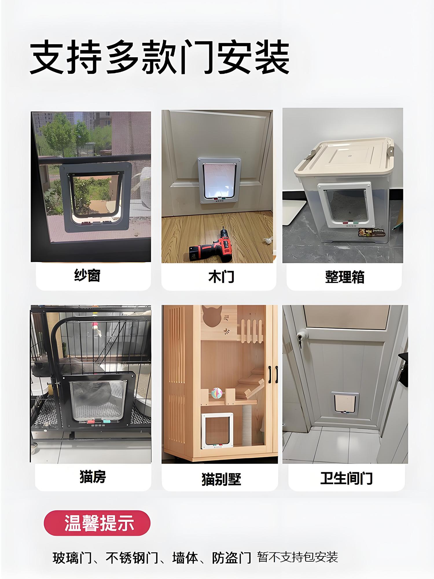 Puerta para Gato para Entrada y Salida Libres, Entrada y Salida para Mascotas para Gatos y Perros, Ventana de Pantalla de Cristal, Agujero para Puerta de Dormitorio, Paquete de Instalación de Agujero para Puerta Bidireccional