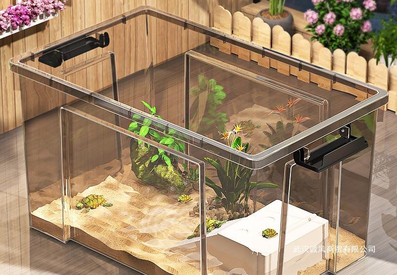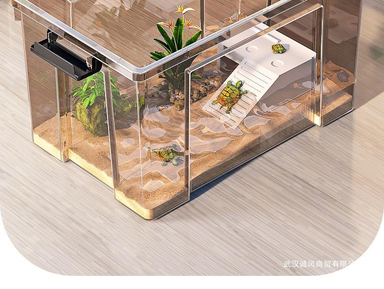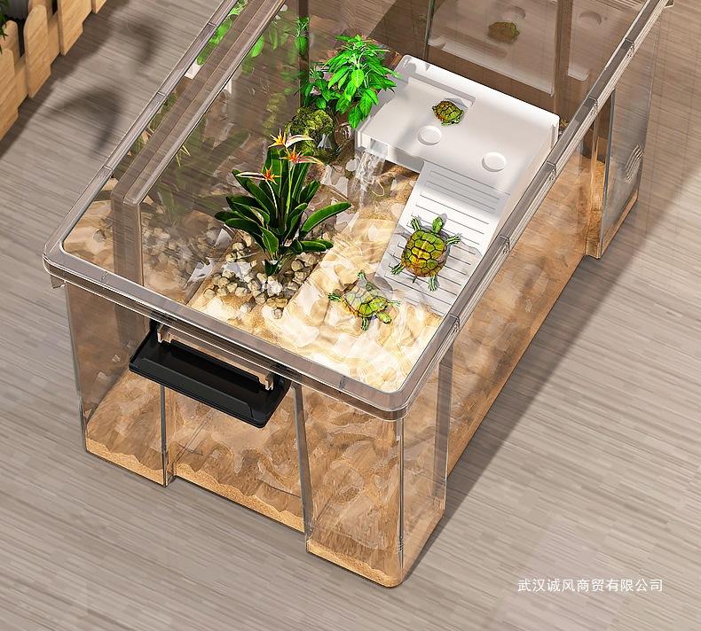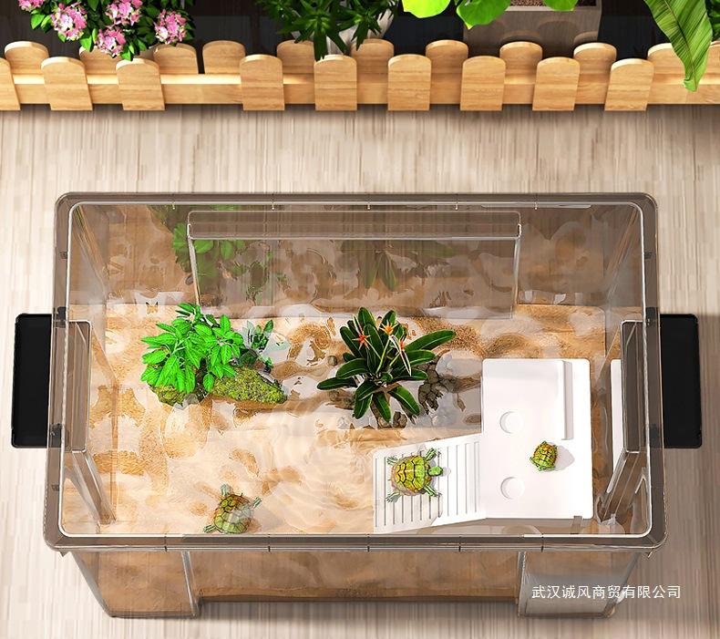 Tanque para Tortugas Domésticas Extra Grande con Plataforma para Tomar el Sol y Plataforma para Escalar Ecológico con Tapa a Prueba de Escapes Paisajístico Tanque de Plástico para Tortugas