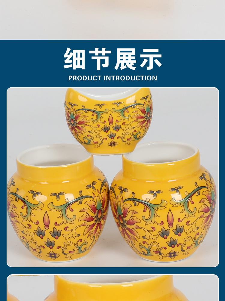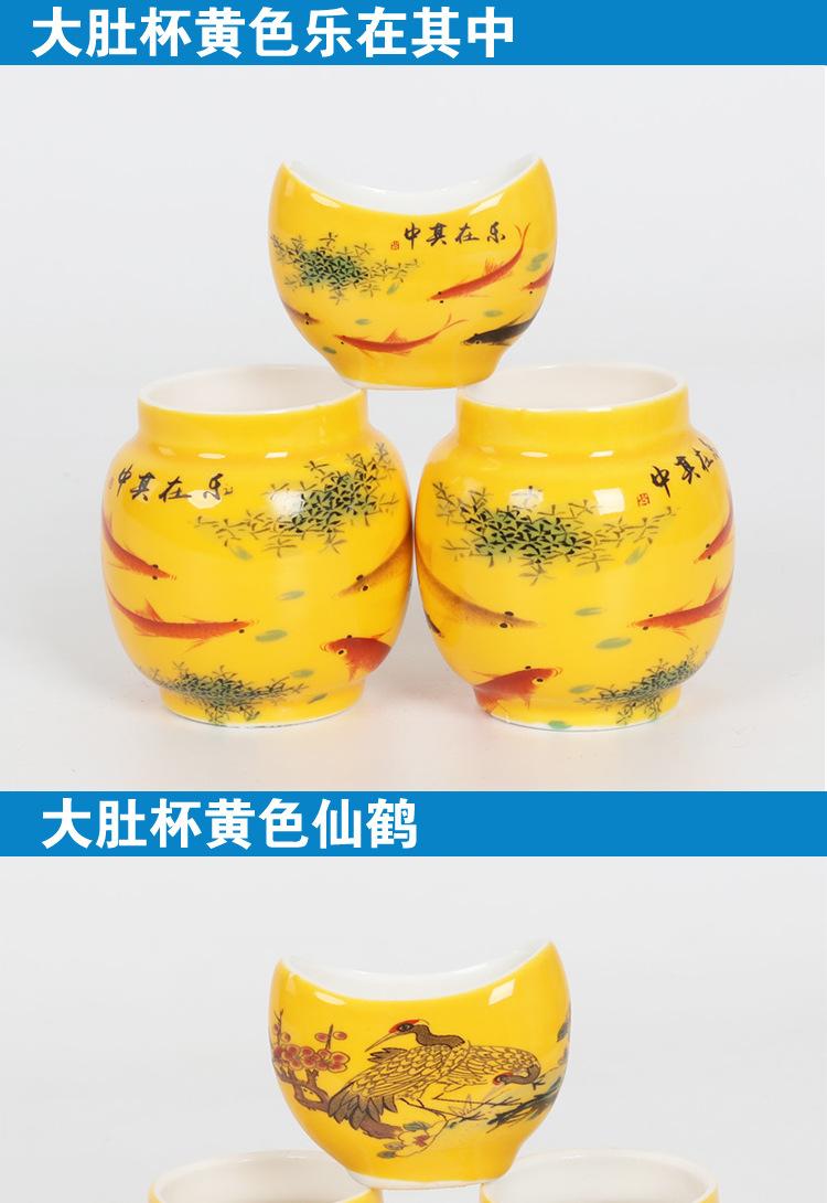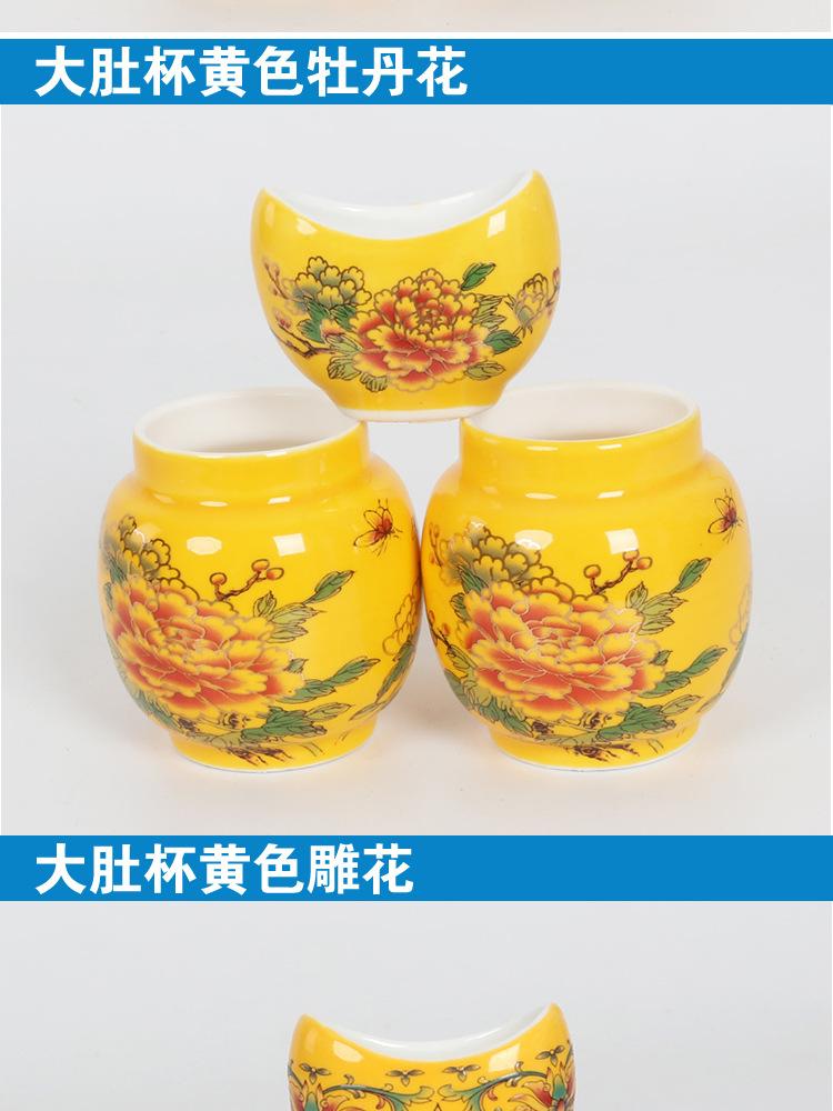 The yellow-glazed potbelly is happy with the default cup handle, Yellow glazed big belly retro carved cup hand...