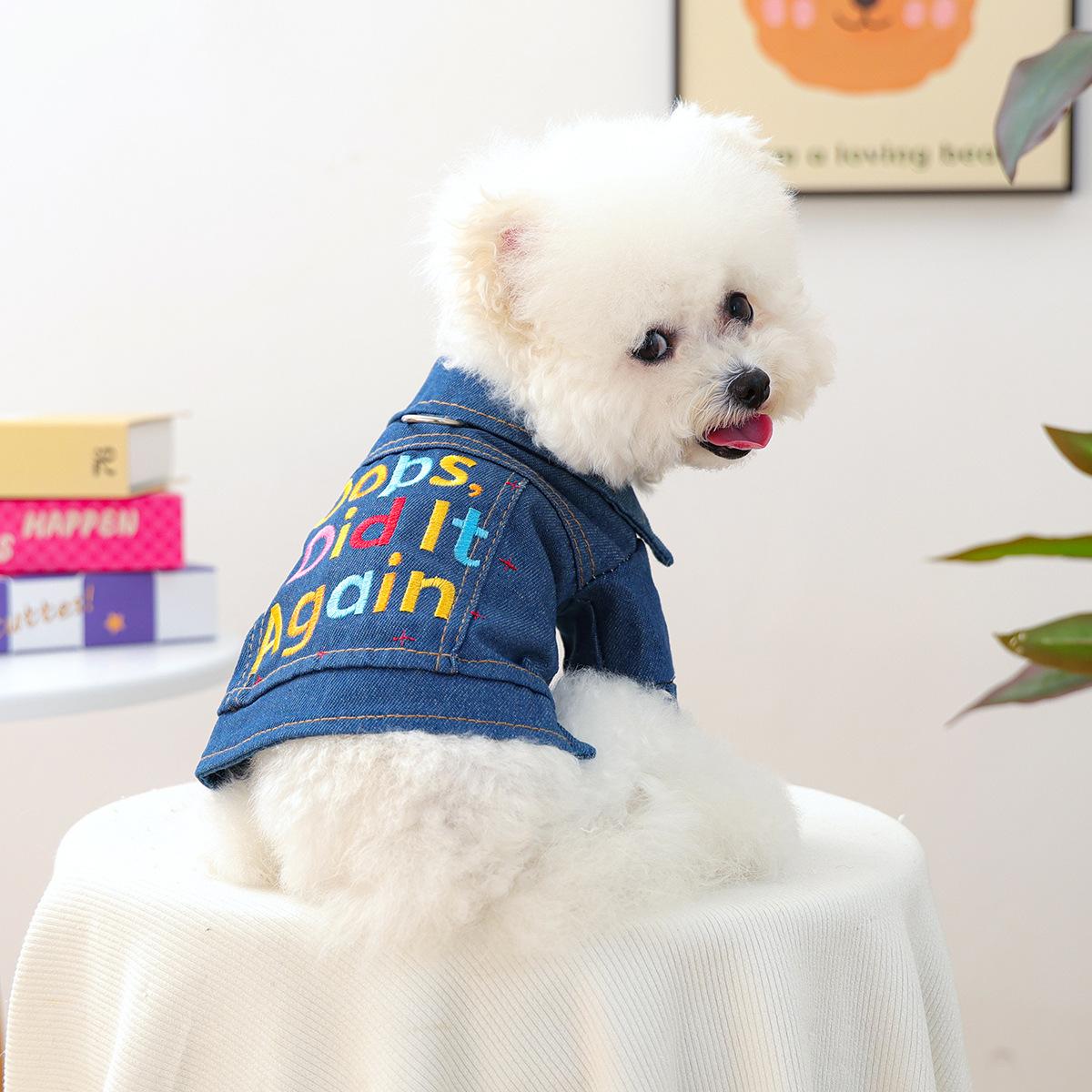 Ropa para Mascotas Estilo Otoño e Invierno Perro Pequeño Cachorro Perro Feliz Gato Ropa Cálida Cómoda Chaqueta Vaquera Traviesa