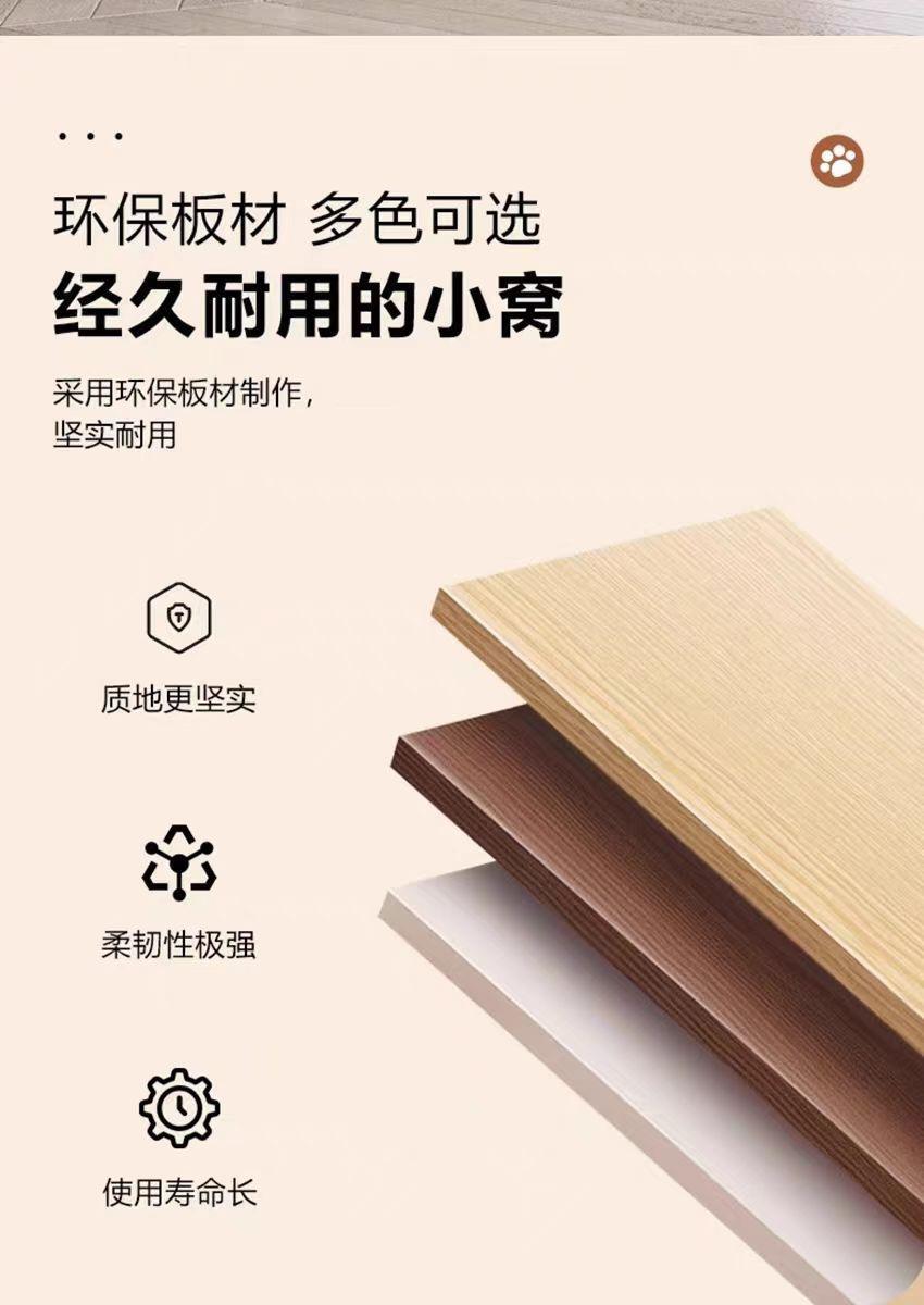 Esta villa para gatos no incluye gatera. Si necesita una gatera, por favor contacte al servicio de atención al cliente para una personalización.