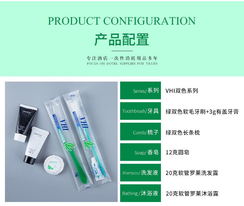 VHI bagged green two-color dental appliance, VHI bag green two-tone comb, 12G European poetry round soap, Luol...