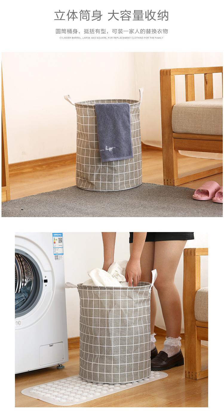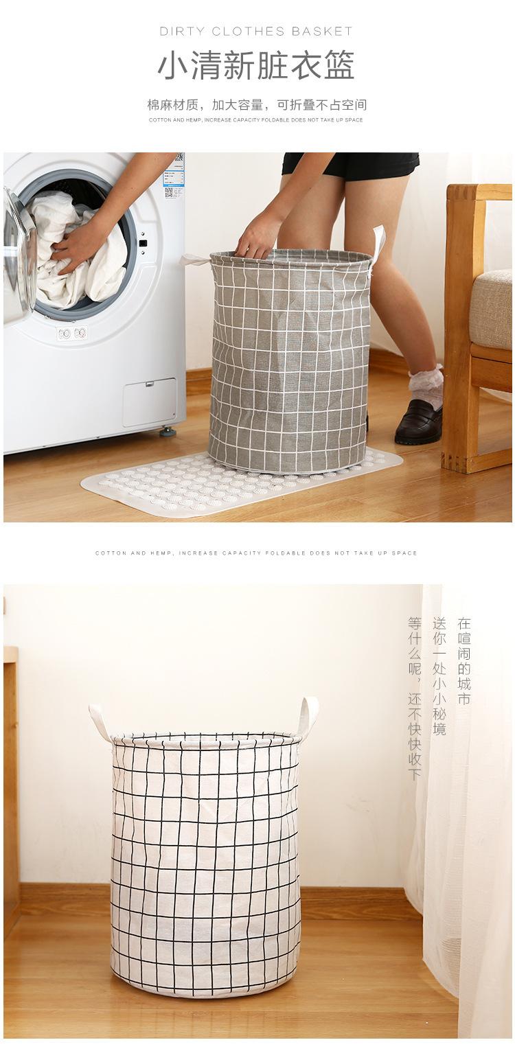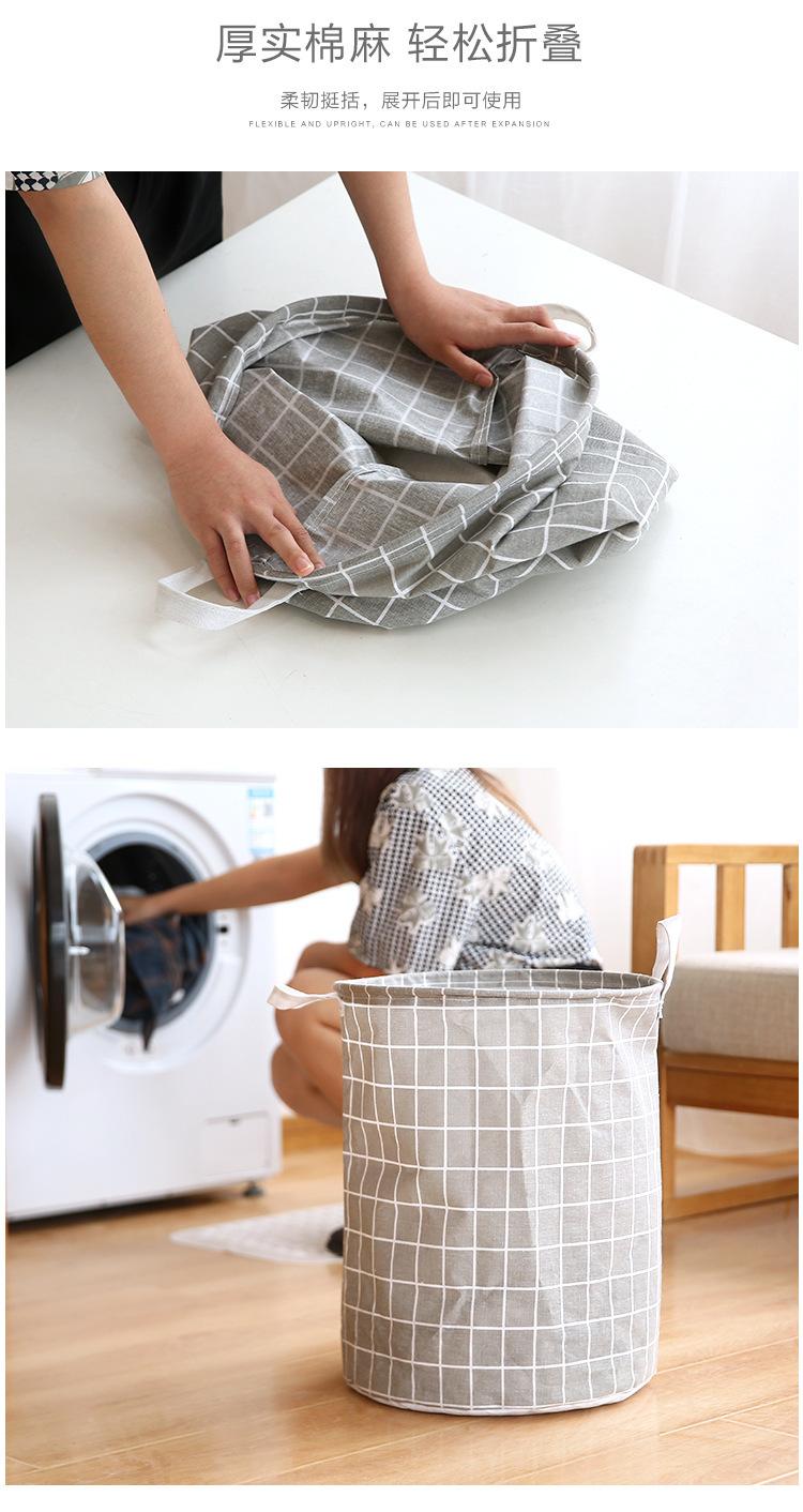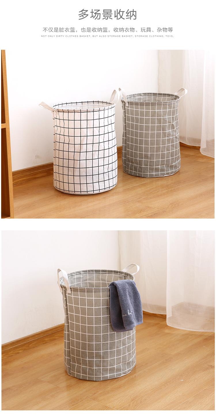 Cesta para ropa sucia, cesta para juguetes, cesta de tela a cuadros de algodón y lino, cesta grande plegable impermeable