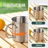 Taza de Agua Plegable de Acero Inoxidable 304 para Camping al Aire Libre, Taza para la Boca, Portátil, Plegable, con Asa, Taza para Montañismo, Taza para Camping
