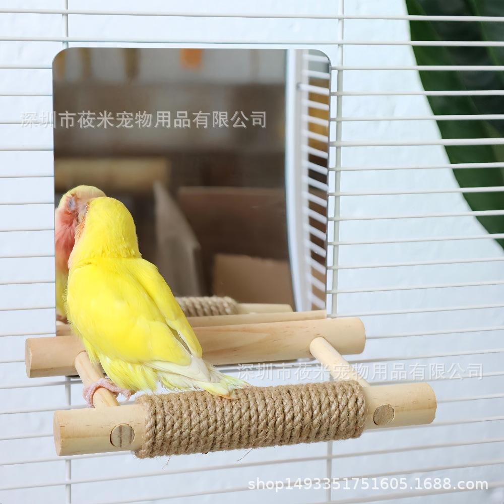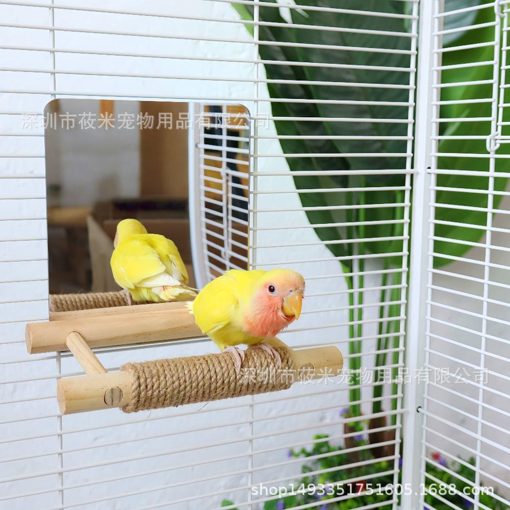 Juguetes para Loro en Stock Escalera Simple de Madera Maciza Plataforma para Trepar Soporte con Espejo para Pájaros Plataforma Soporte Palo para Pájaros Loro