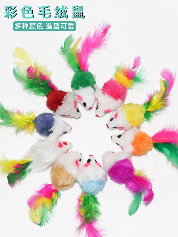 Fuente del Fabricante Peluche Ratón Simulación Peluche Pluma Colorida Gatito Teasing Ratoncito Suministros para Mascotas Juguete para Gato Auto-Feliz