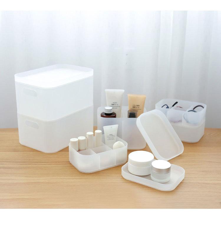 Caja de almacenamiento de artículos diversos, caja de almacenamiento de plástico de estilo japonés, caja de almacenamiento de cosméticos de escritorio para dormitorio con tapa, cesta de almacenamiento