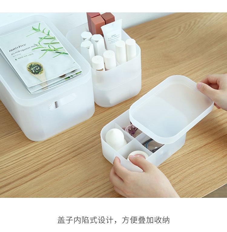 Caja de almacenamiento de cosméticos de escritorio, caja de almacenamiento de joyas esmeriladas, caja de almacenamiento de artículos diversos de papelería, caja de almacenamiento de mascarillas con partición de múltiples rejillas