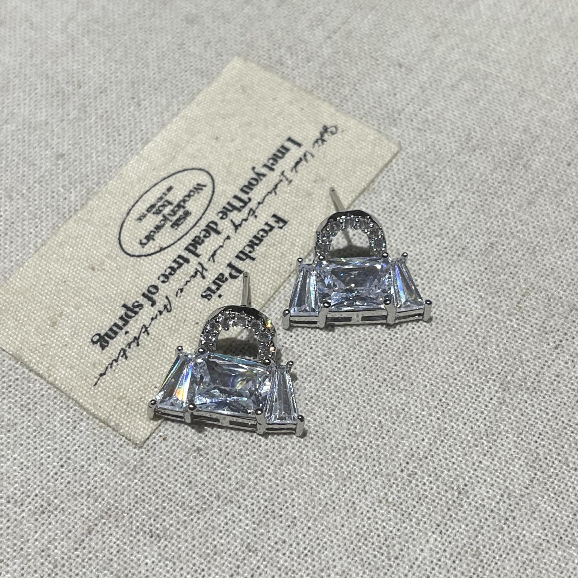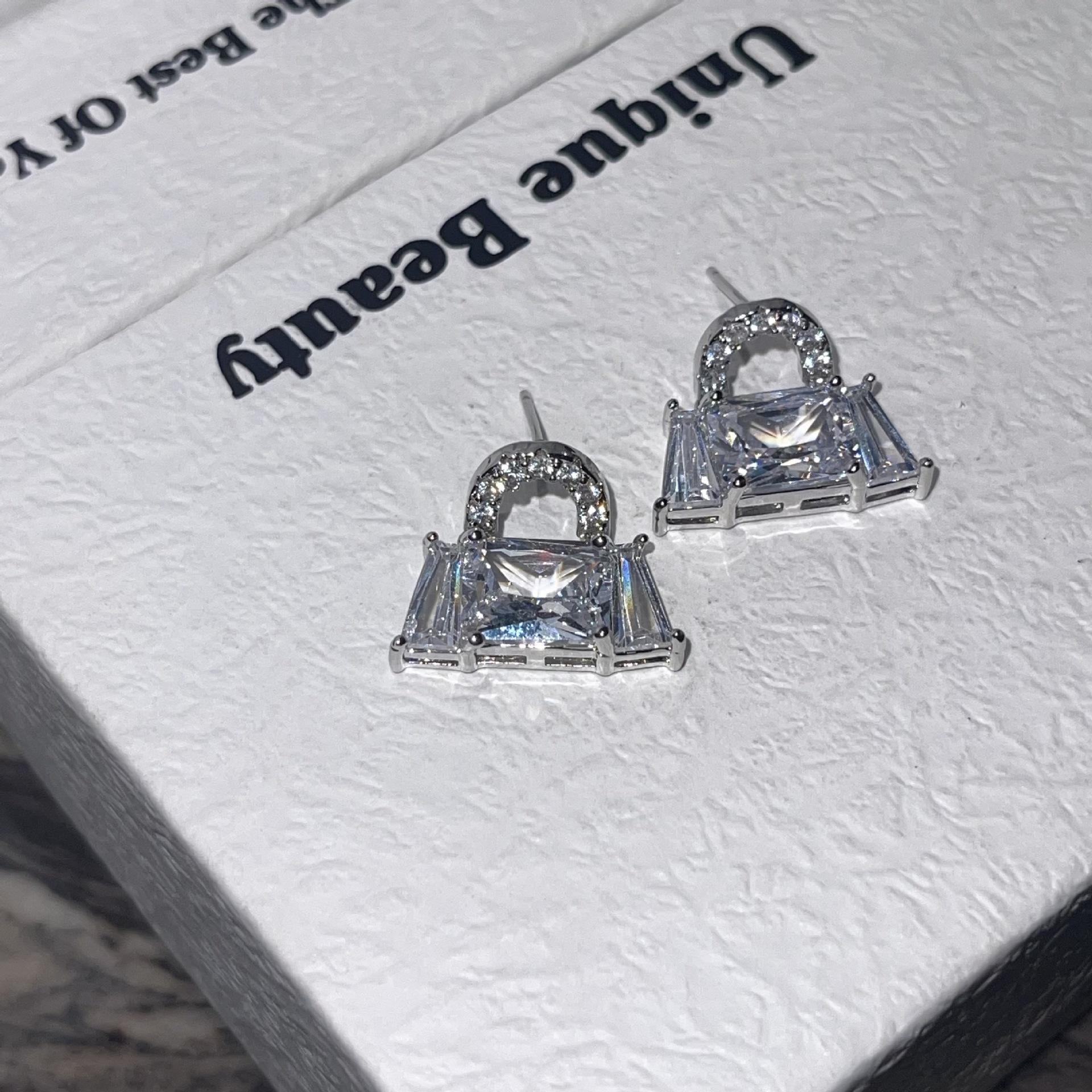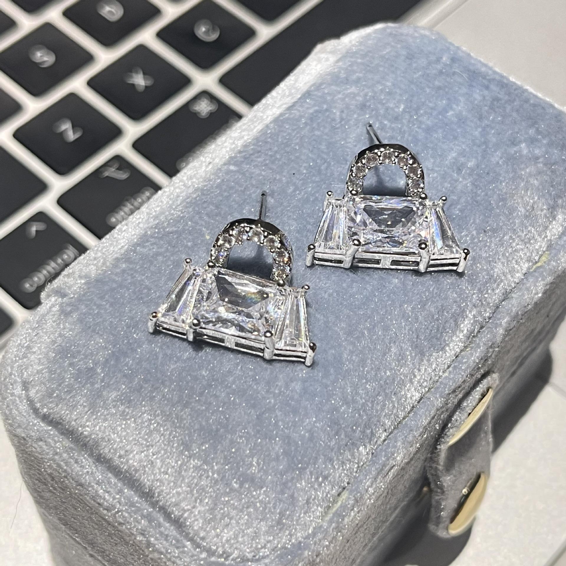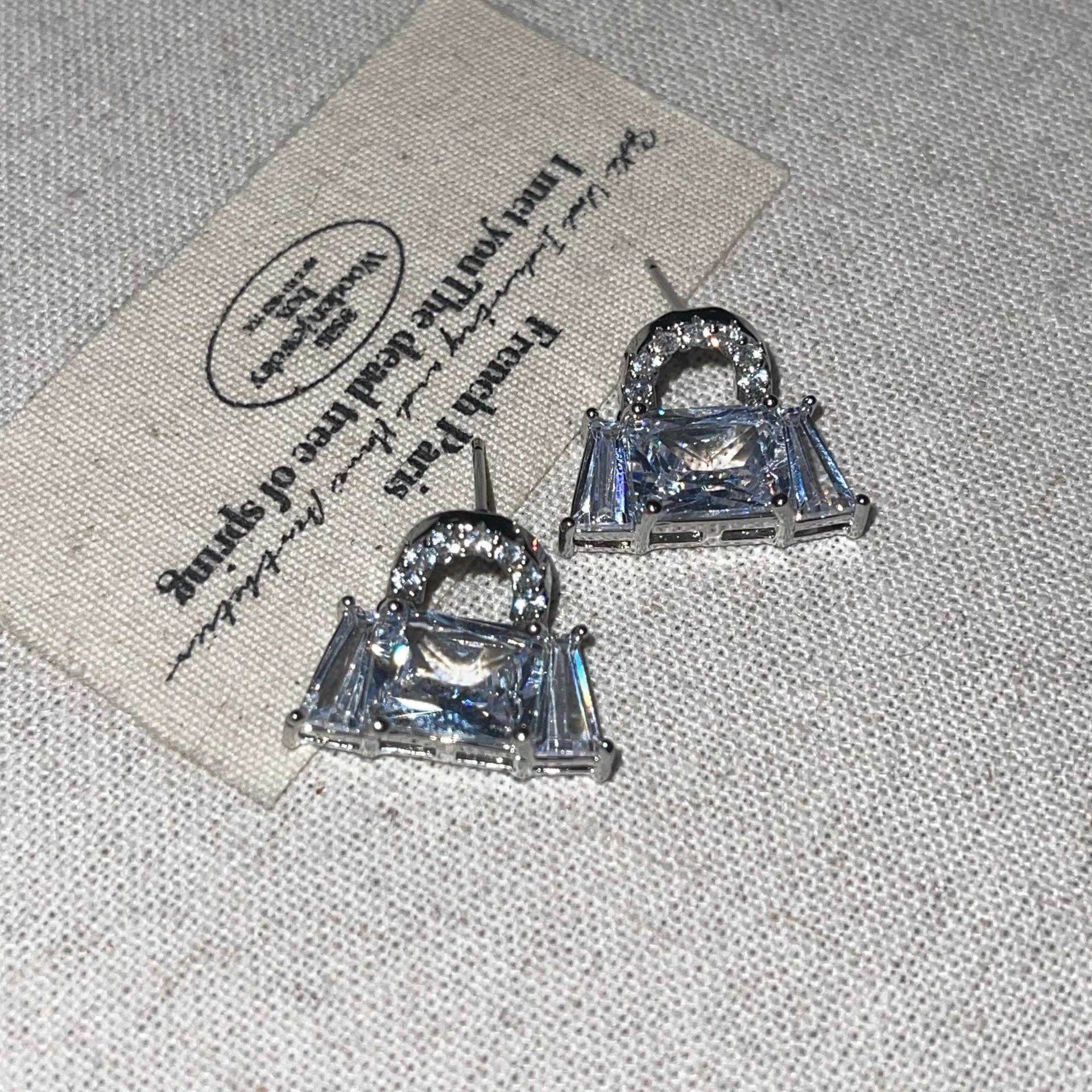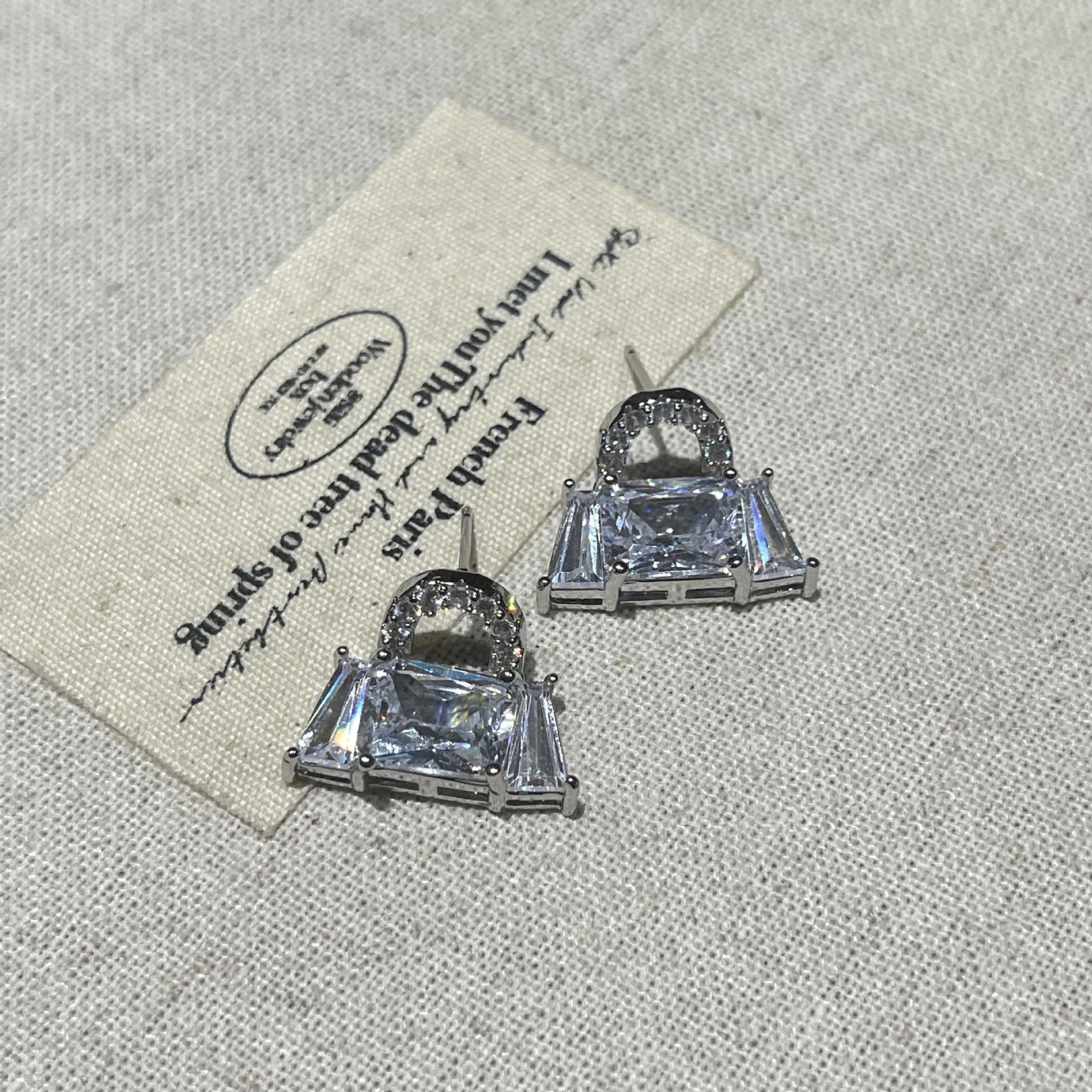 Pendientes de Bolso de Circonita Flash de Verano Pendientes Creativos de Estilo de Lujo Ligero Pendientes Versátiles Exquisitos para Mujer Sentido Avanzado de la Moda