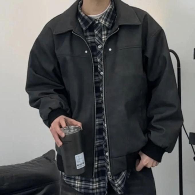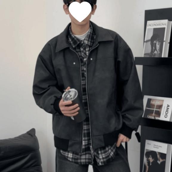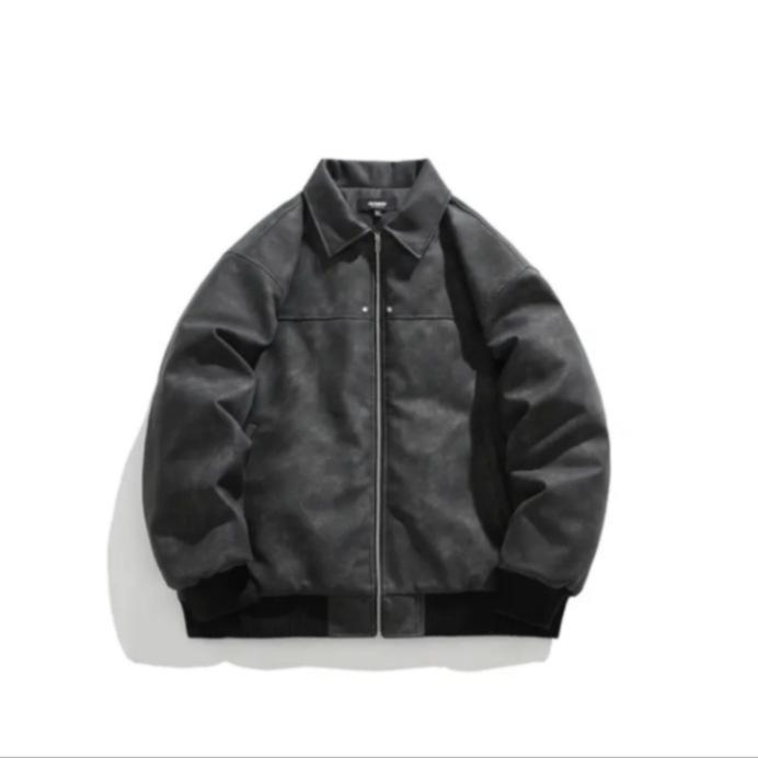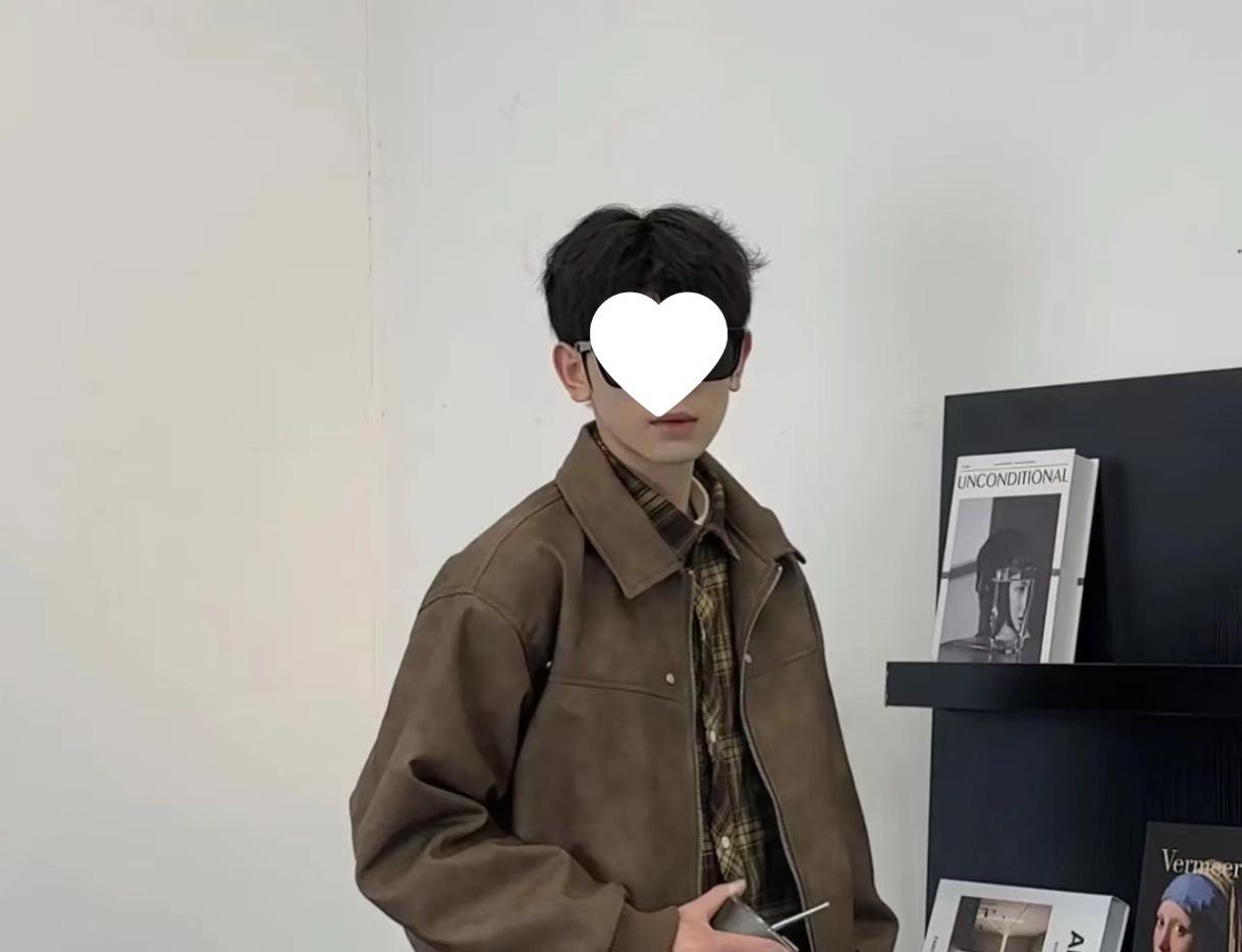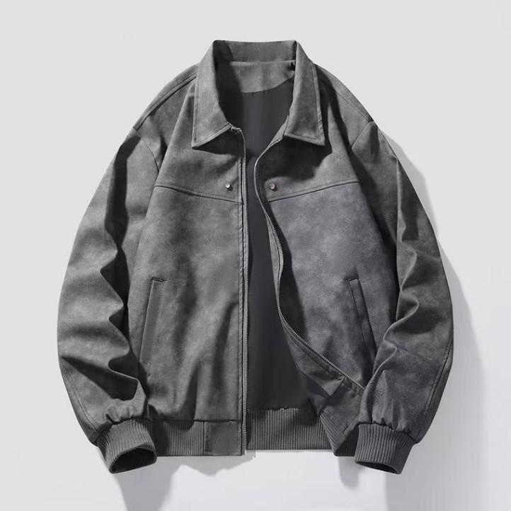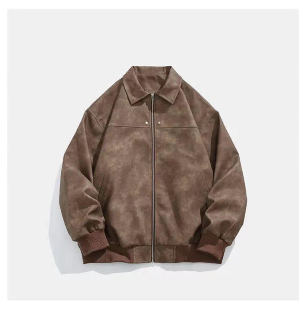 Chaqueta de Cuero Nueva de Primavera para Hombre Holgada Casual Comercio Exterior Tendencia Retro Americana Versátil Abrigo Marrón