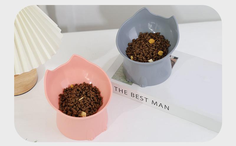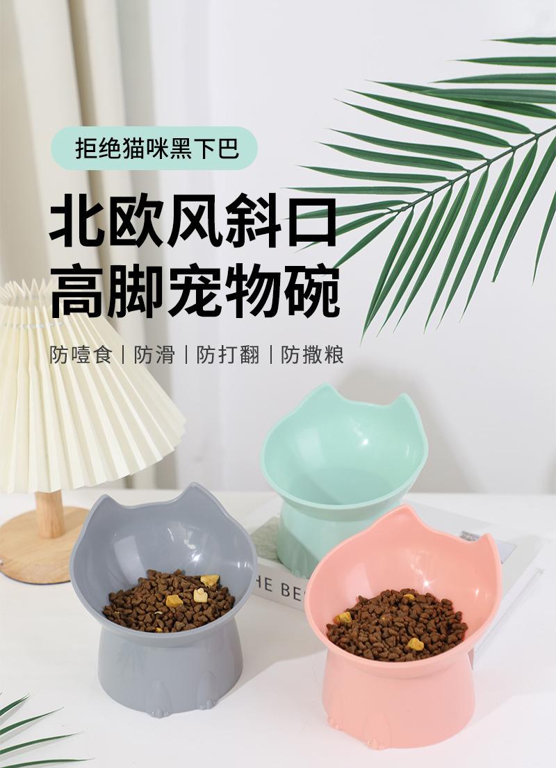Tazón para Gato de Pie Alto Gran Capacidad Estilo Nórdico Inclinado Dibujos Animados Protección de Cuello Anti-Vuelco Plástico Elefante Anti Espondilosis Cervical Tazón para Mascota