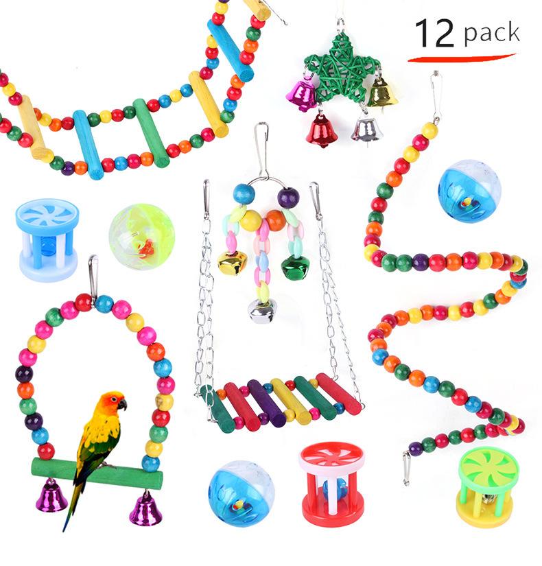 Suministro Directo de Fábrica Transfronterizo Juguetes para Aves Loro Colgantes Jaula Columpio Puente Arcoíris Set Combinado de Juguetes para Loro Suministros para Aves