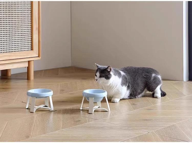 Tazón para Gato Pecolo Tazón para Comer y Beber para Perro Tazón para Mascota Pe Anti-Mentón Negro con Soporte para Tazón Tazón para Gato de Aspecto Alto