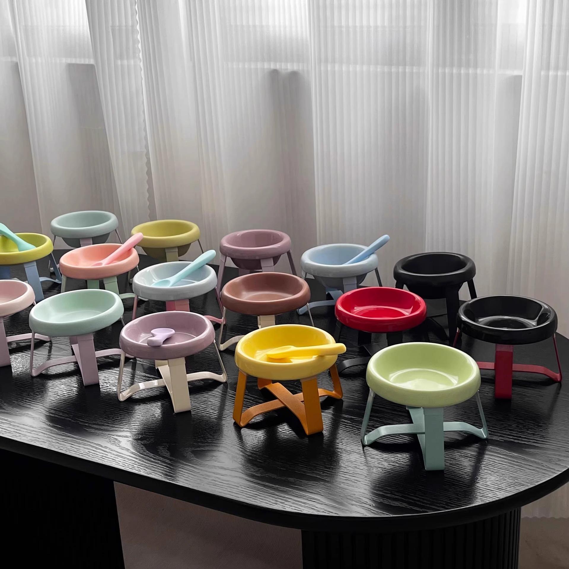 [bright yellow bowl + red rack] pe reverse pet bowl, [matte black bowl + powder stand] pe reverse pet bowl, [m...
