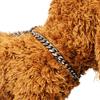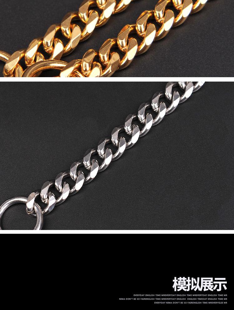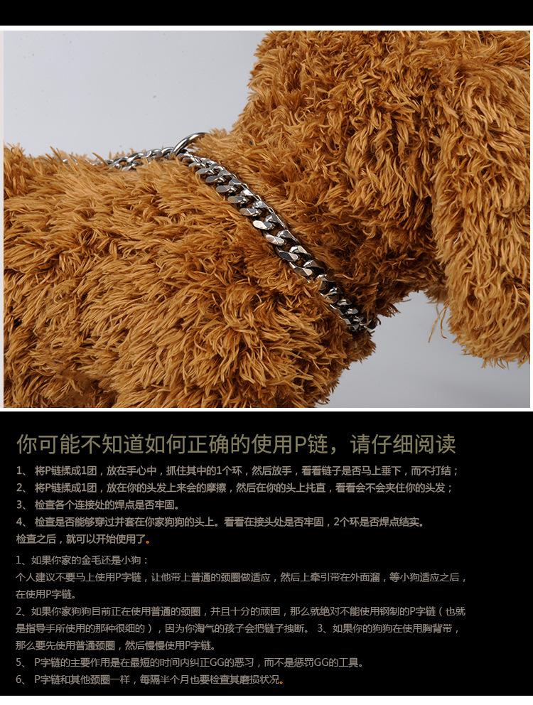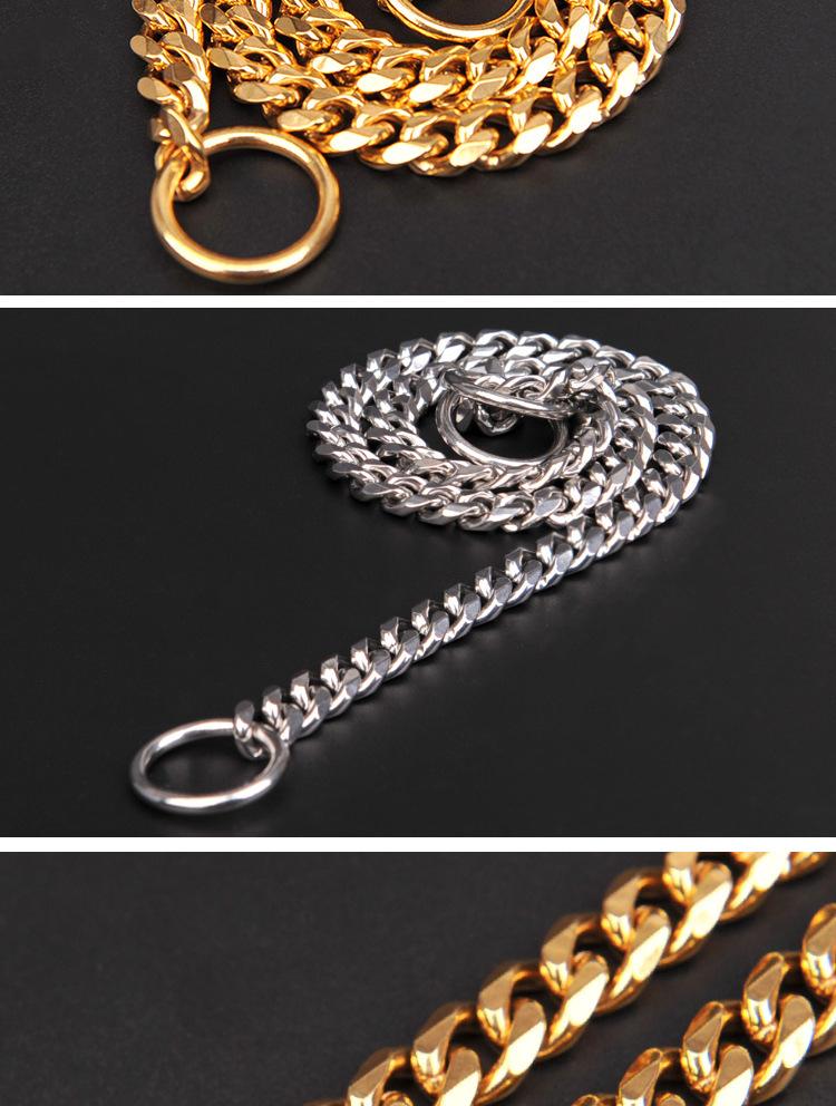 [Cómo usar]: Sostenga un extremo de la cadena de acero inoxidable en una mano, cuélguela verticalmente y sostenga el anillo de fondo plano en la otra mano, deje que la cadena se deslice hacia abajo desde el anillo para formar un collar, y finalmente póngaselo en la cabeza a su mascota.