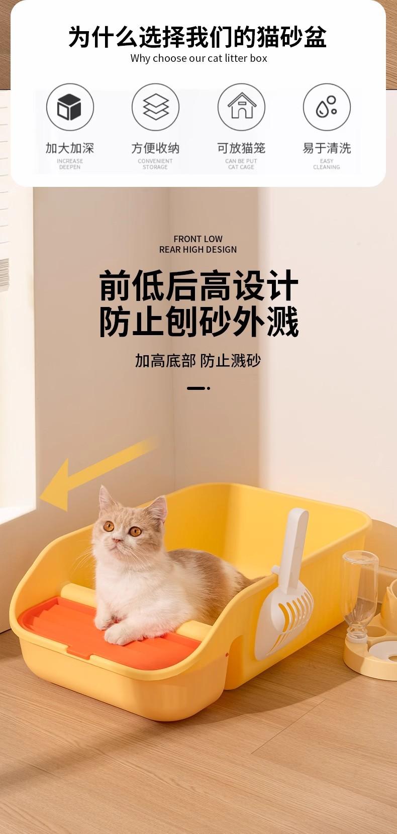 Caja de Arena para Gatos Extra Grande Semicerrada Extra Grande Gatito Gato Inodoro Abierto Anti-Salpicaduras Suministros para Gatos