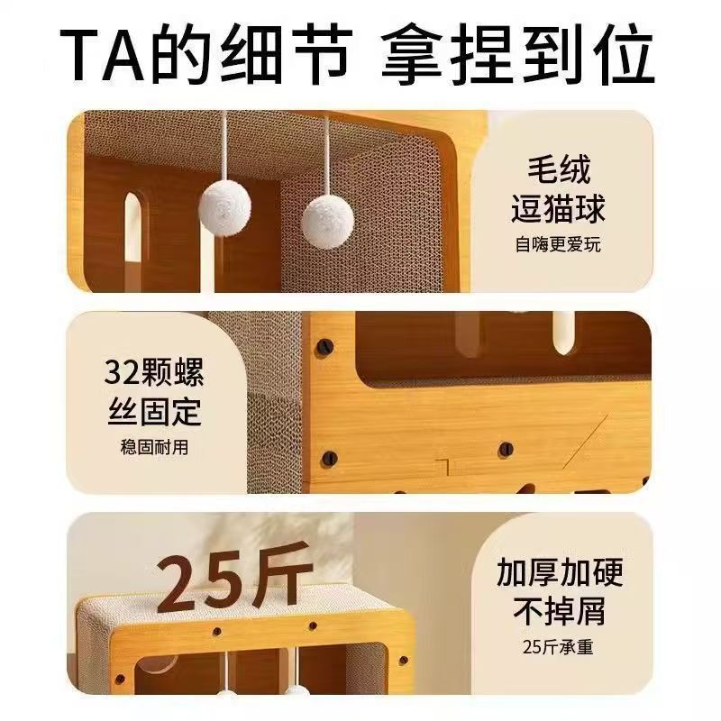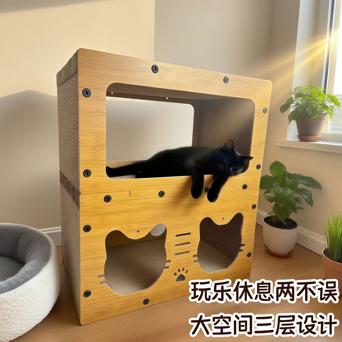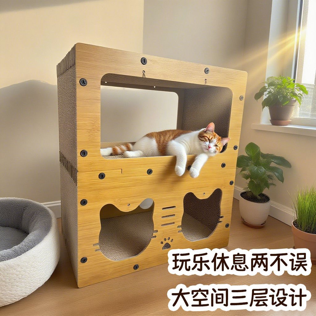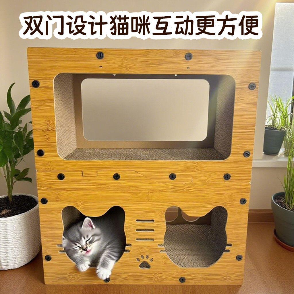 Tabla para Rascar Gatos Sofá para Gatos Integrado Villa Vertical para Gatos Cama para Gatos Doble Capa Resistente al Desgaste Resistente a los Arañazos No Desprende Restos de Papel Cartón Corrugado Juguete para Gatos