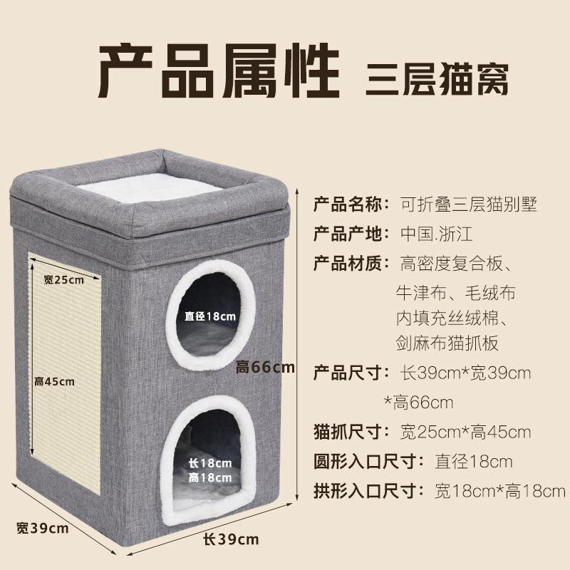 Cama para Gatos Más Vendida de Amazon Cama Cálida de Tres Capas Plegable Universal para las Cuatro Estaciones Nido para Mascotas Venta al Por Mayor Directa de Fábrica Nido para Mascotas