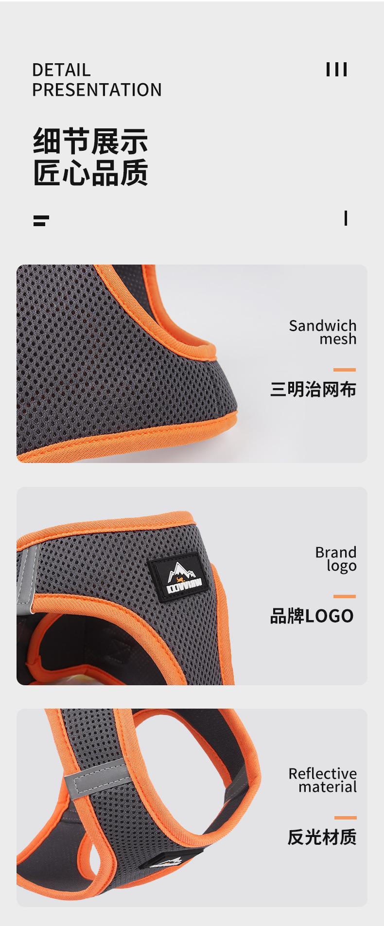 Nuevo arnés para mascotas, estilo chaleco, correa reflectante y transpirable, suministros para mascotas al por mayor.