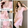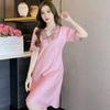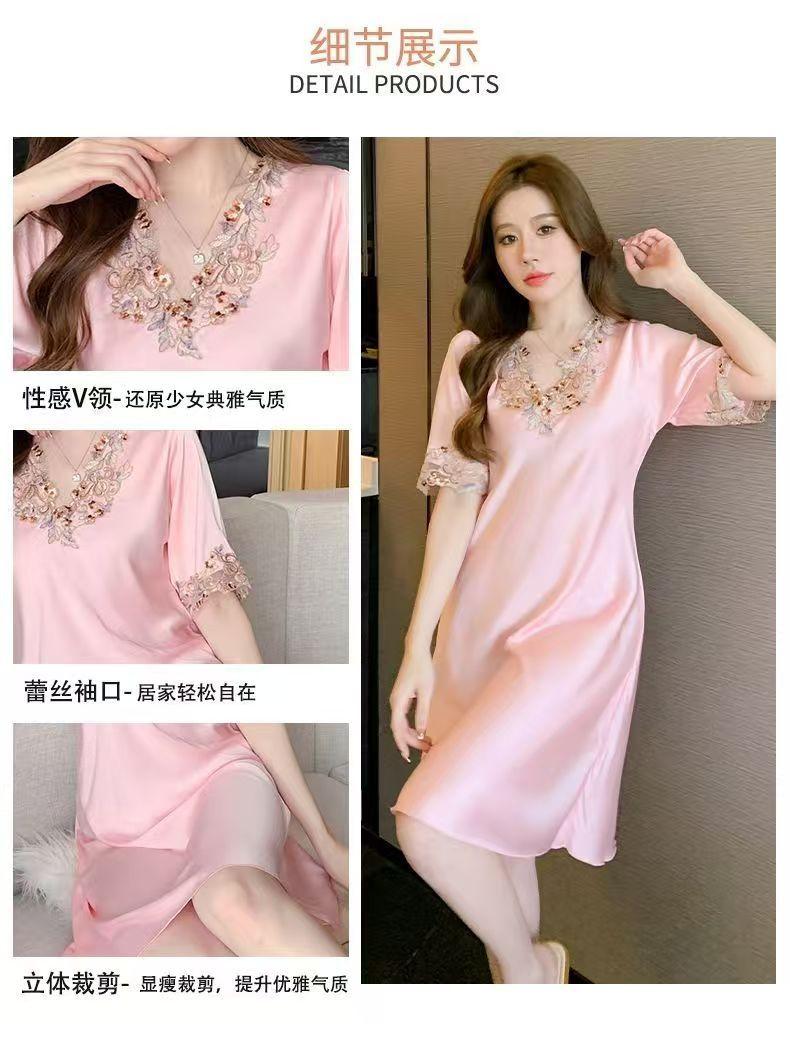 Pijama de Seda de Hielo de Verano para Mujer, Camisón Delgado y Sexy, Camisón de Encaje de Seda de Manga Corta, Ropa Dulce para el Hogar para Mujer