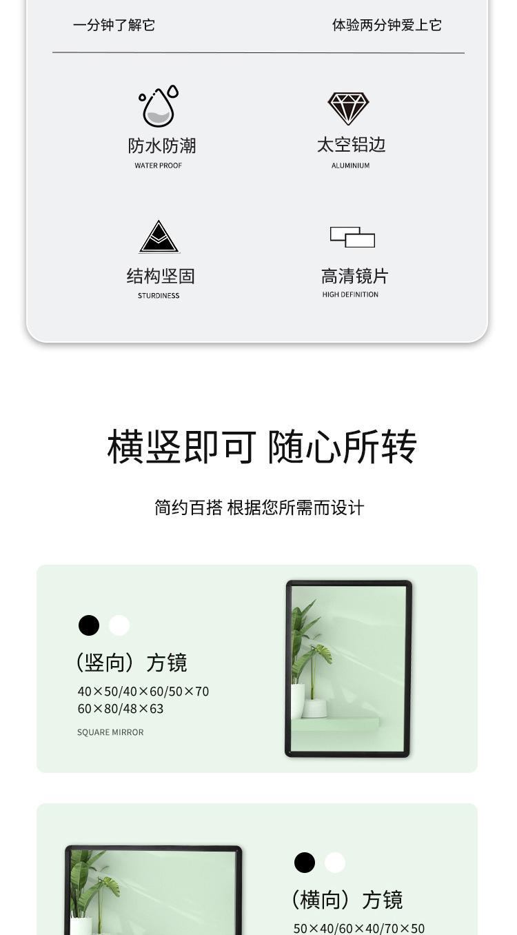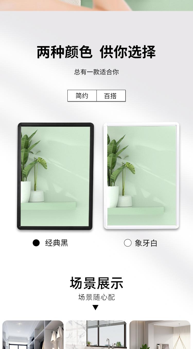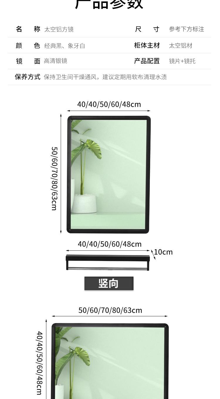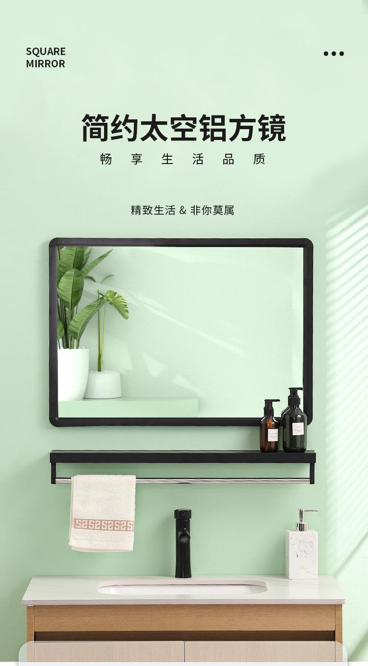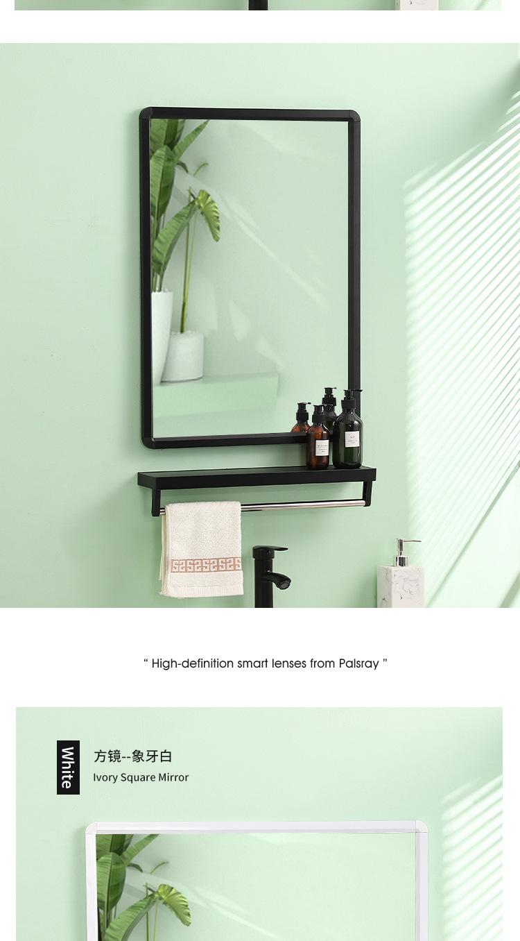 Espejo de baño espejo de baño sin perforaciones simple cuadrado para colgar en la pared montado en la pared hotel inodoro inodoro espejo de maquillaje