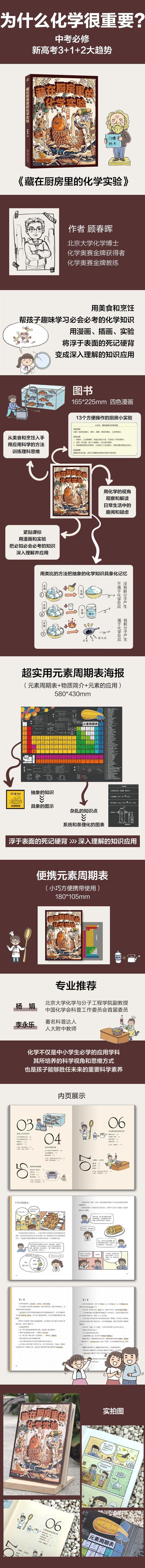 El autor, que se graduó con un doctorado del Colegio de Química e Ingeniería Molecular de la Universidad de Pekín, combinó su experiencia docente en escuelas secundarias clave para crear materiales de lectura de divulgación científica e iniciación a la química en forma de cómics, experimentos caseros y tarjetas de juego, basados en los conocimientos de química de los libros de texto y los estándares curriculares de secundaria y bachillerato. Este libro utiliza el hogar y la cocina como escenas de aprendizaje, registra la vida de una "familia de restaurante" y comparte fácilmente los puntos de conocimiento y los métodos de aprendizaje involucrados en el aprendizaje de la química con los niños en el proceso de compra de ingredientes y elaboración de comida deliciosa. Al final de cada sección, el autor también diseña experimentos químicos sencillos y fáciles de operar para guiar a los niños a realizar operaciones simples con materiales que están fácilmente disponibles en casa, convirtiendo el aprendizaje abstracto de la química en actividades científicas interesantes. El libro también viene con un póster creativo de la tabla periódica para ayudar a los niños a aprender y dominar el conocimiento químico de forma gráfica, de modo que puedan tener una comprensión más profunda de la química y enamorarse de la química.