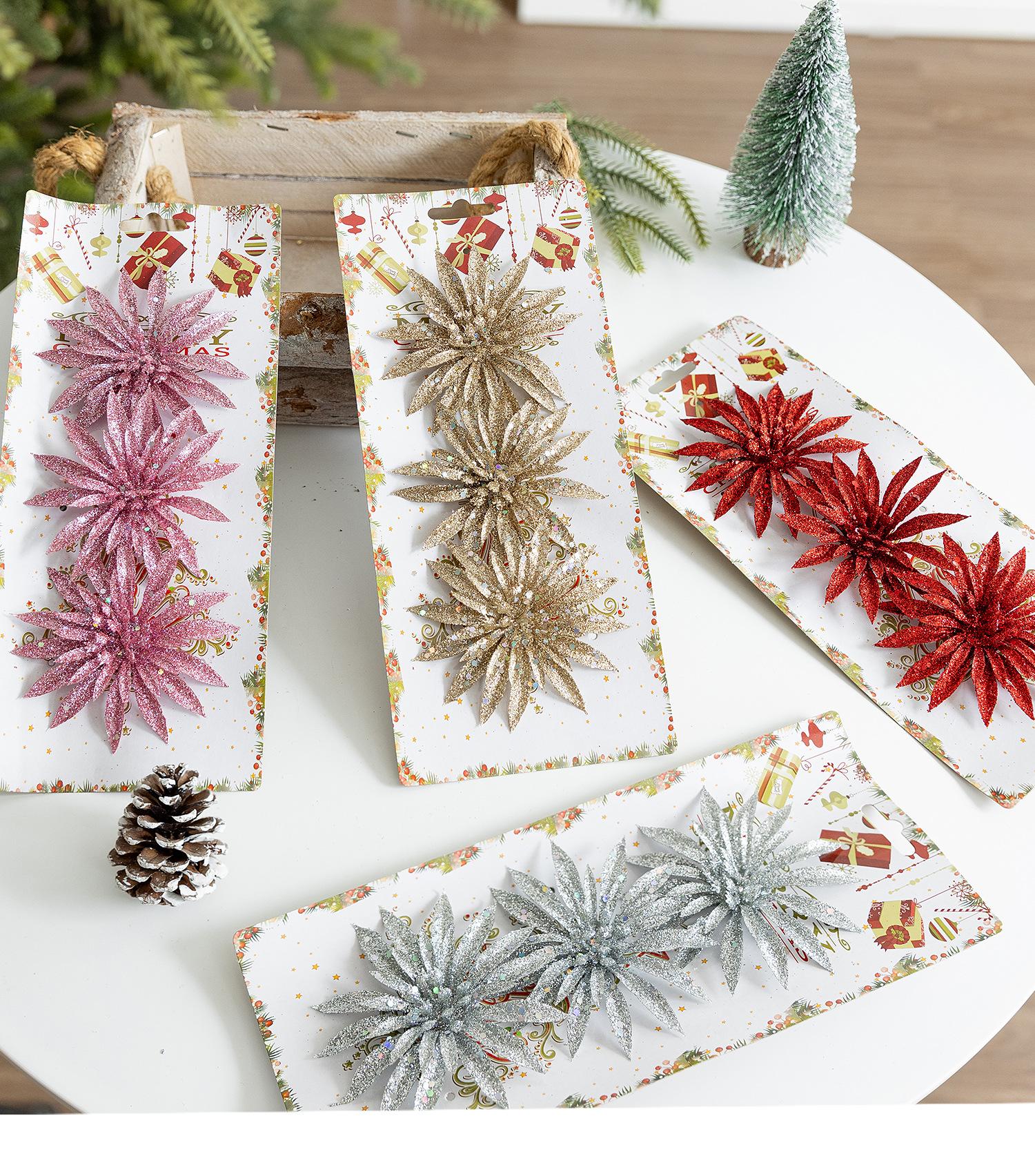 Decoraciones Navideñas de Venta Caliente Transfronteriza Flores Artificiales con Brillo Flores Falsas Decoración para Árbol de Navidad Decoraciones de Flores de Plástico