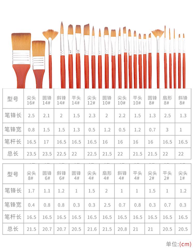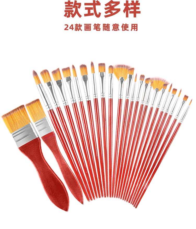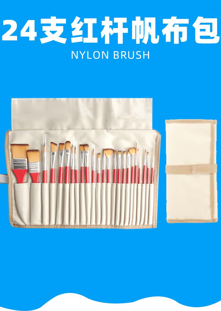 Set de 24 Pinceles de Nailon para Pintura de Venta Caliente Transfronteriza, Pinceles para Gouache y Acuarela, Mango Gris Plateado, Cortina para Bolígrafos, Pinceles para Pintura al Óleo
