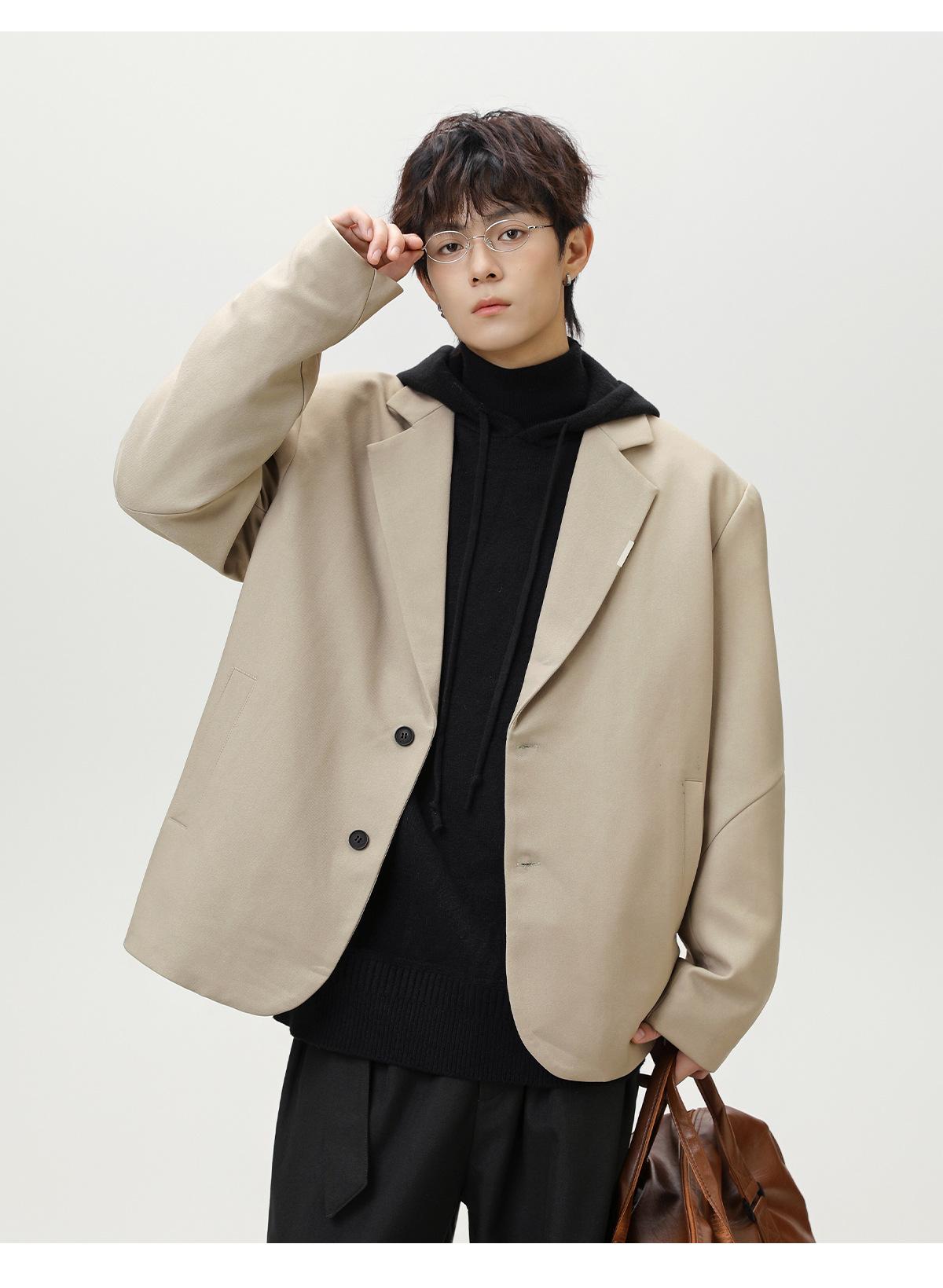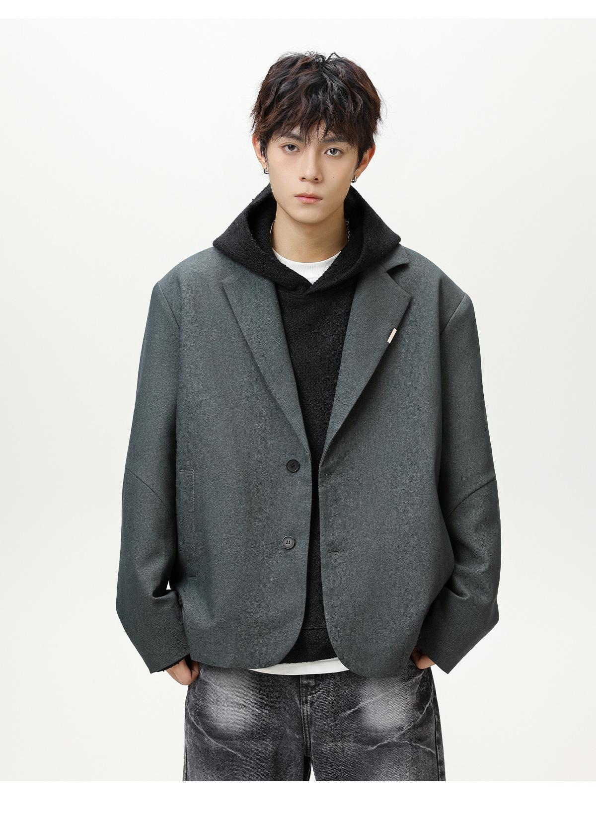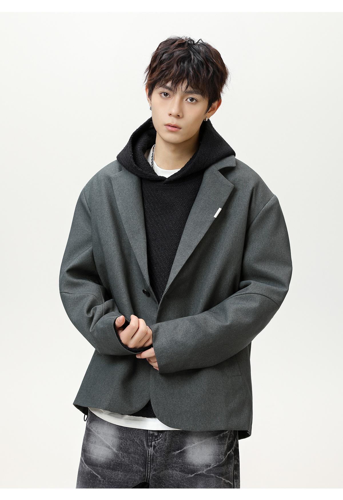 Diseño de Empalme Dividido Traje Casual para Hombre Otoño Nuevo Marca de Moda Suelto de Alta Gama Americano Retro Chaqueta de Traje