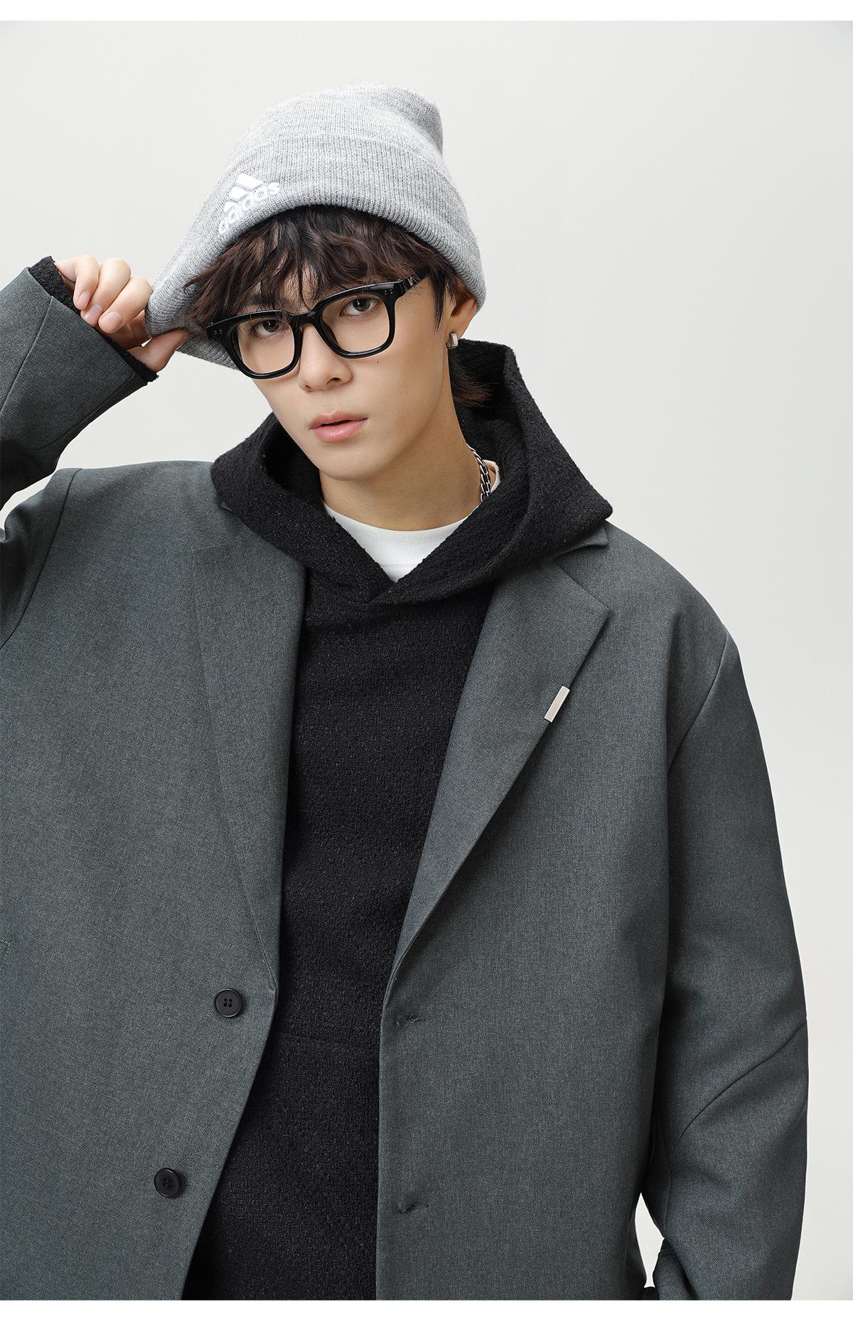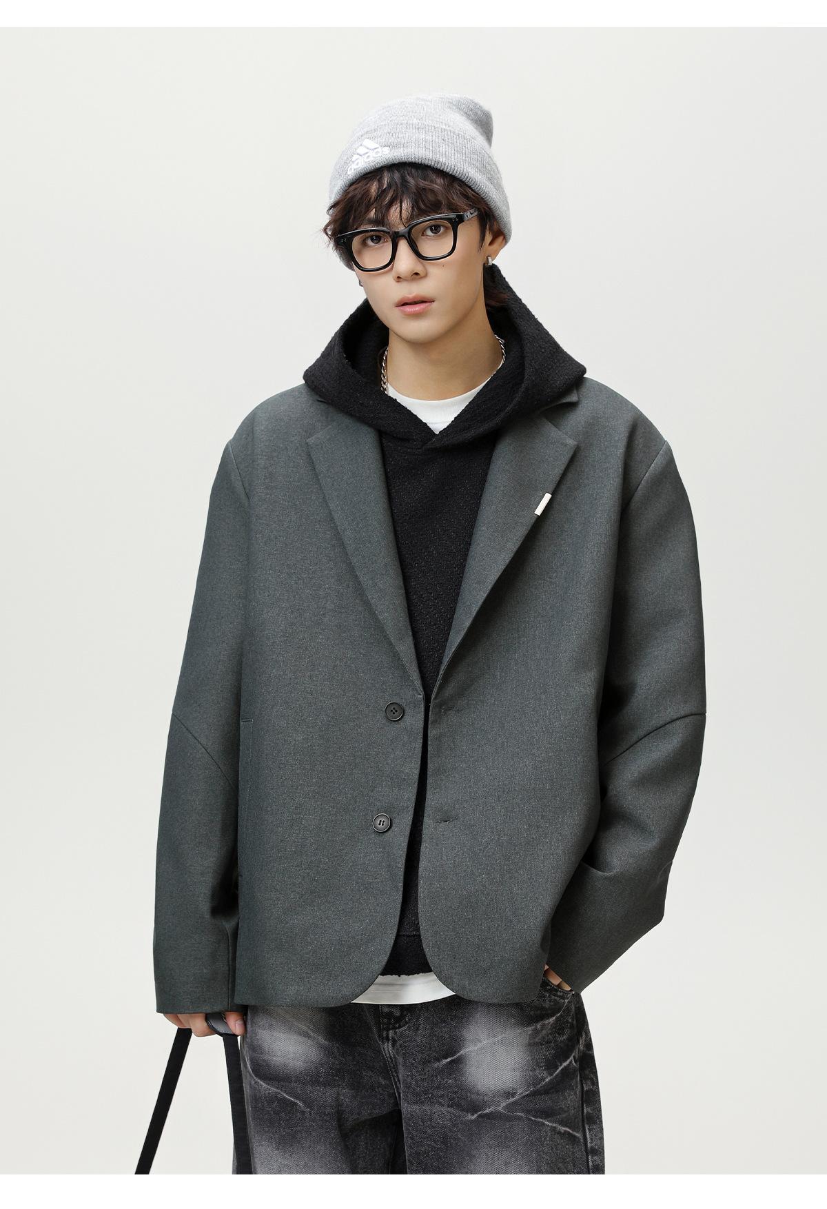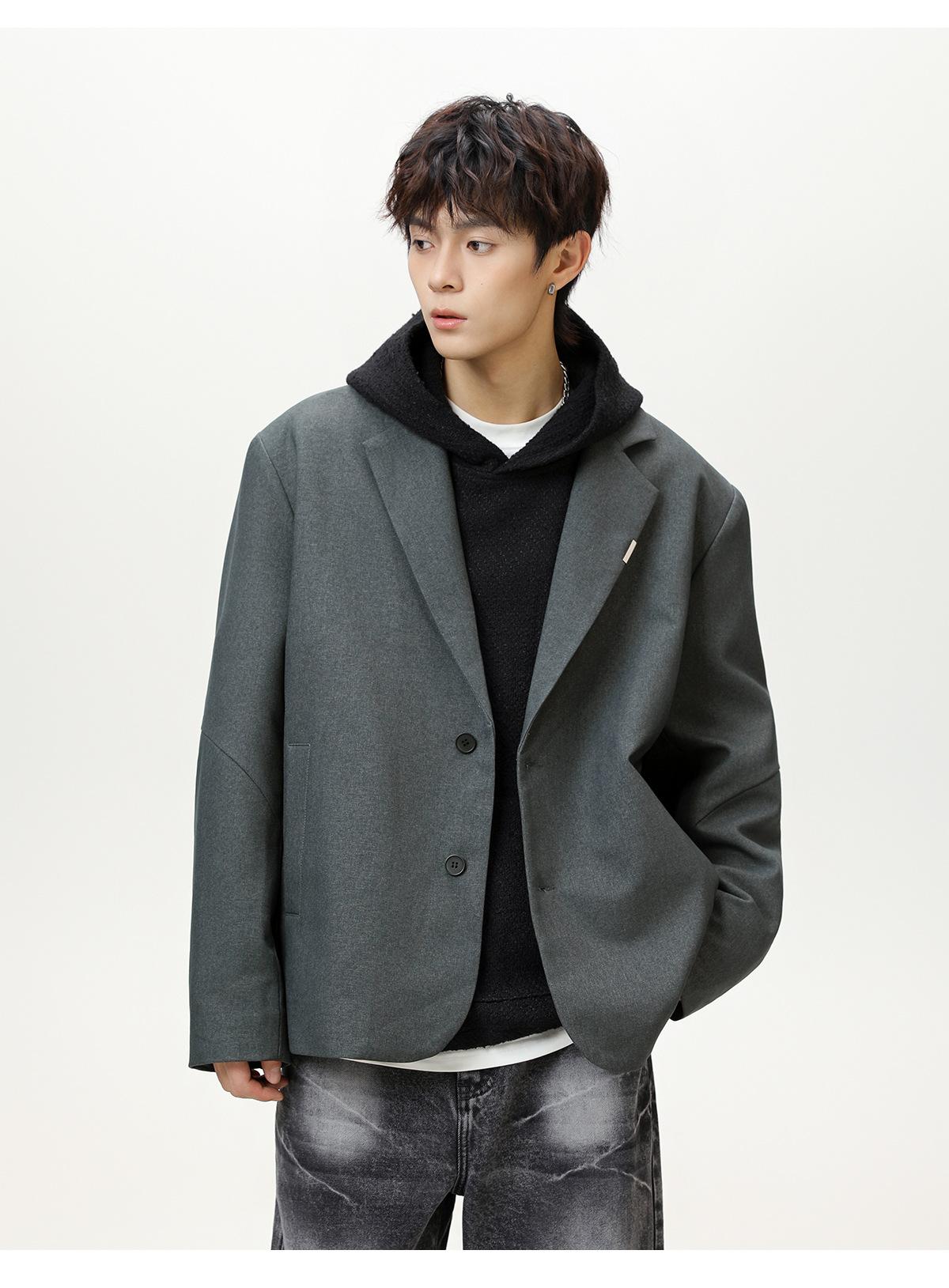 Diseño de Empalme Dividido Traje Casual para Hombre Otoño Nuevo Marca de Moda Suelto de Alta Gama Americano Retro Chaqueta de Traje