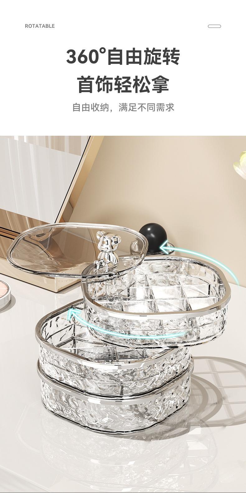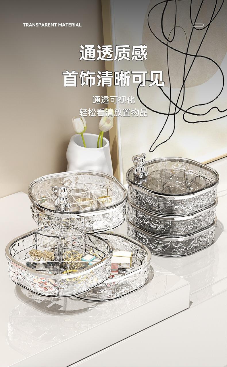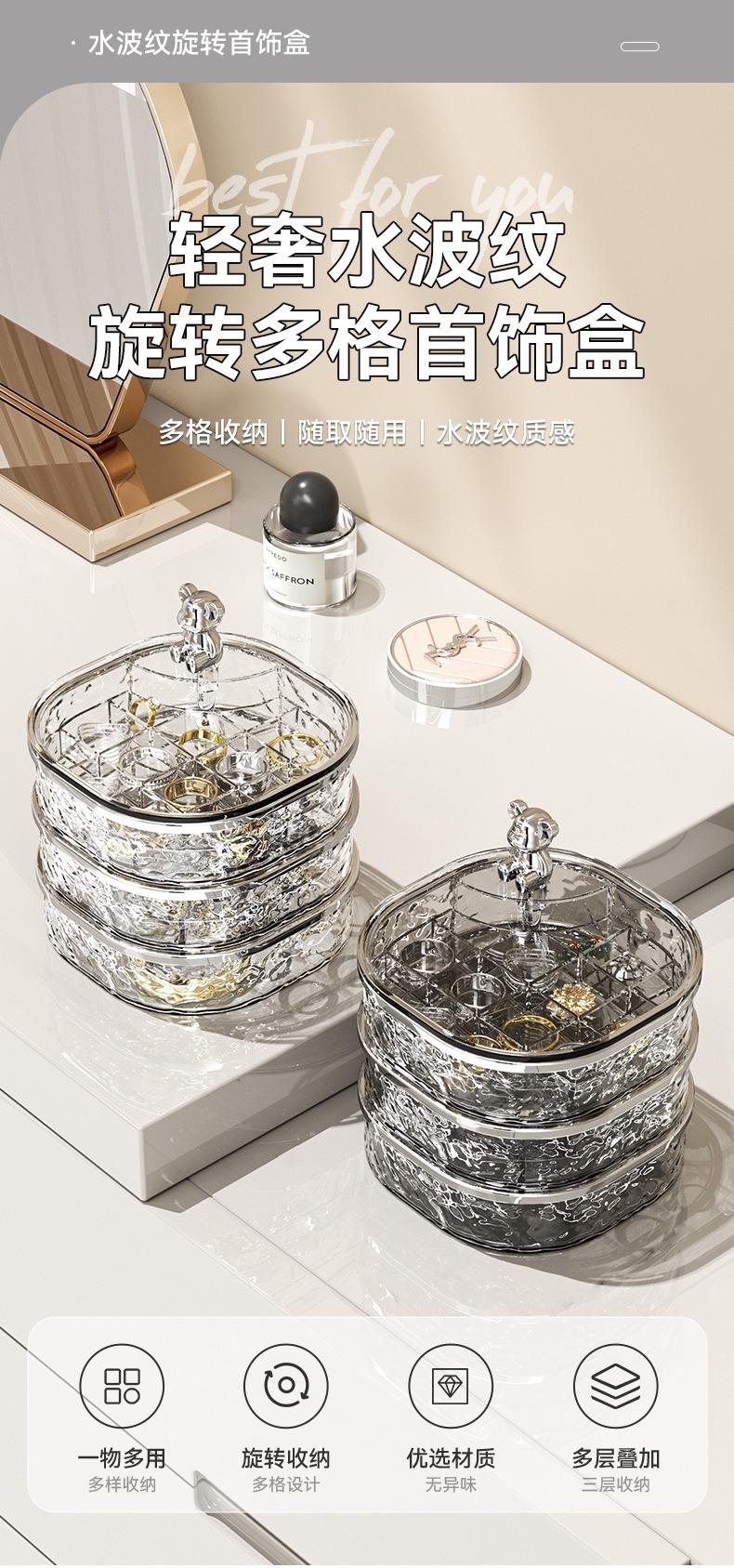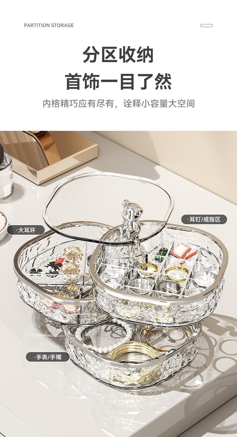 Caja de Almacenamiento de Joyas de Tres Capas Transparente con Ondas de Agua Caja de Almacenamiento de Anillos y Aretes Giratoria de Alta Gama a Prueba de Polvo