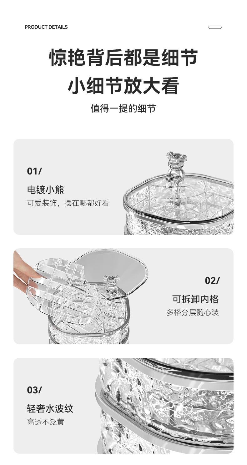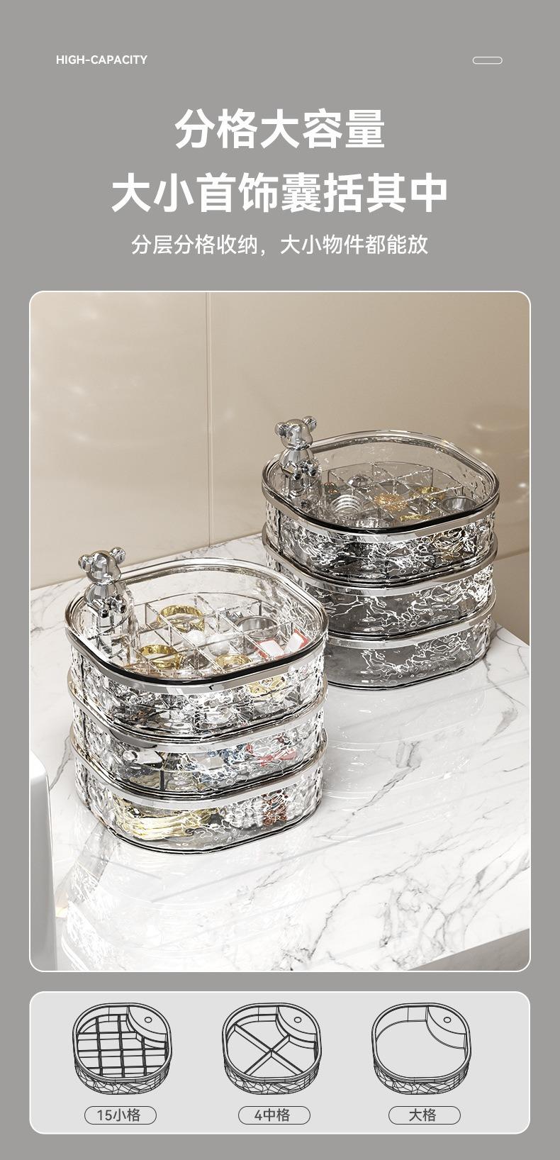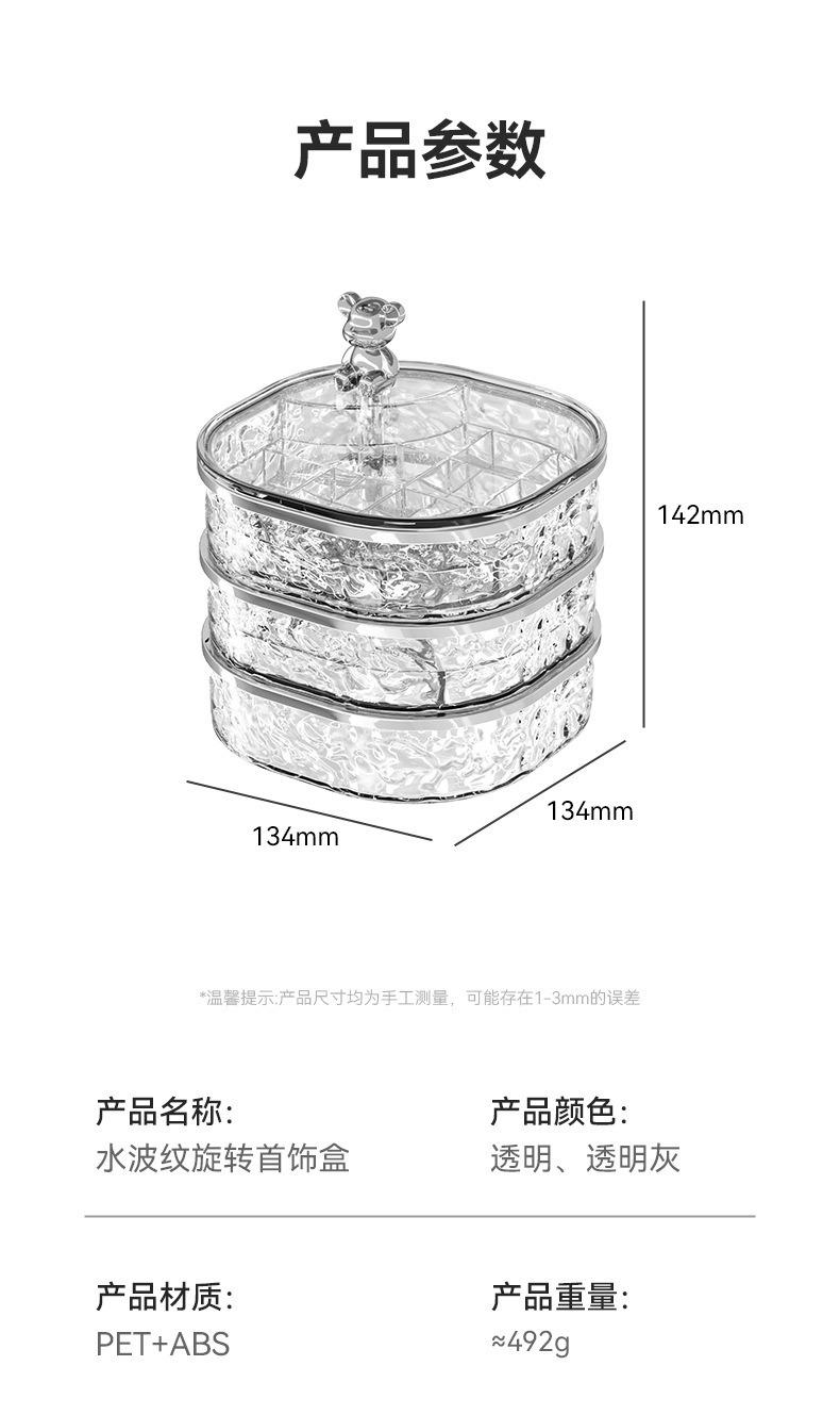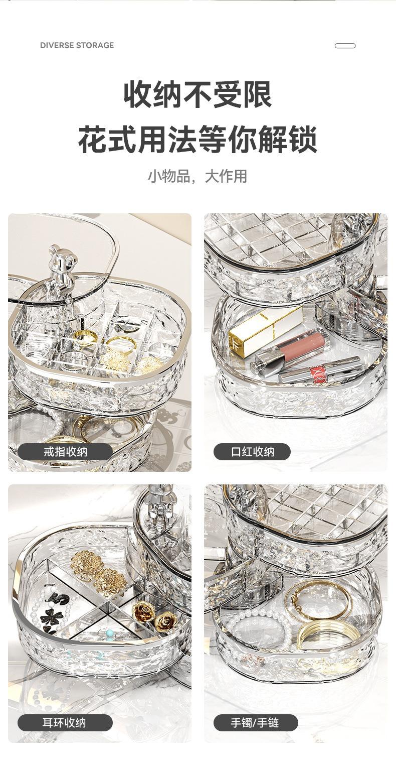 Caja de Almacenamiento de Joyas de Tres Capas Transparente con Ondas de Agua Caja de Almacenamiento de Anillos y Aretes Giratoria de Alta Gama a Prueba de Polvo