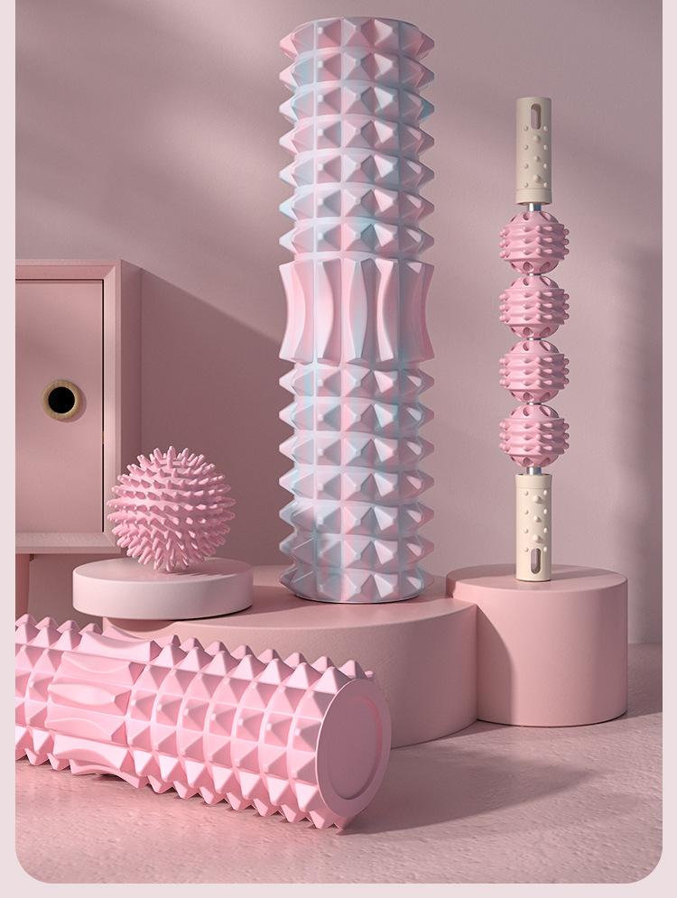 Black: 33*12cm foam roller [hollow] + four-ball massage stick + massage thorn ball