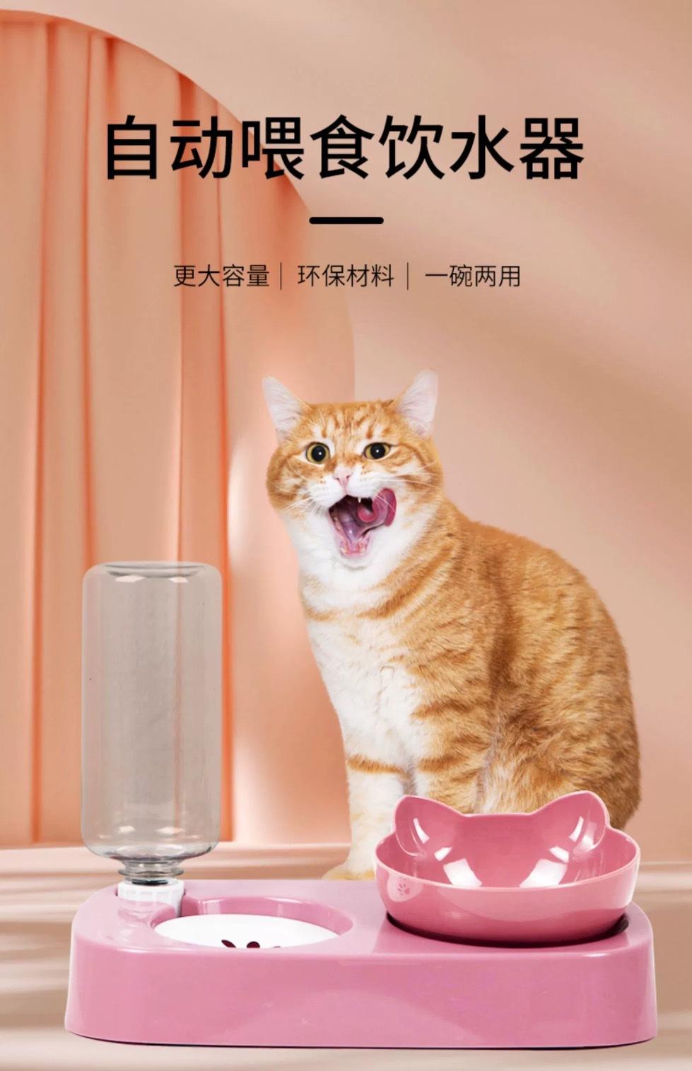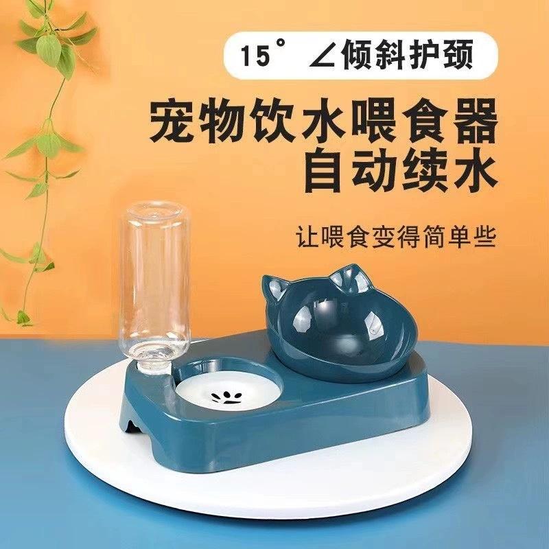 Suministros para Mascotas Nuevo Tazón para Gatos y Tazón para Perros Transfronterizo Tazón Doble Anti-Vuelco Dispensador de Agua Automático Tazón para Comida para Gatos