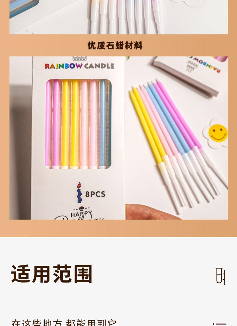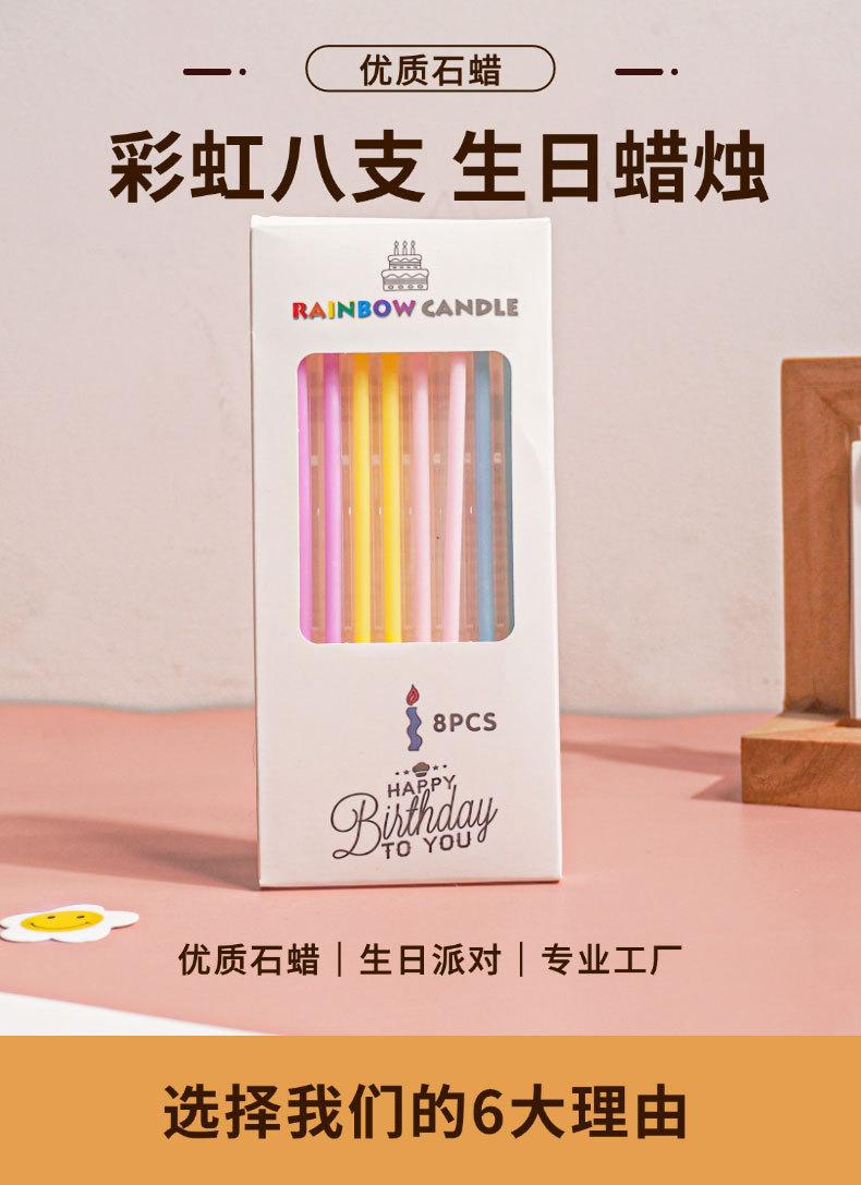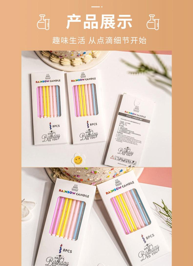 Vela de Cumpleaños Recta Lápiz Arcoíris Vela para Pastel Personalizada Creativa para Fiesta Romántica para Hornear Colorida Chapada en Oro Palo Largo