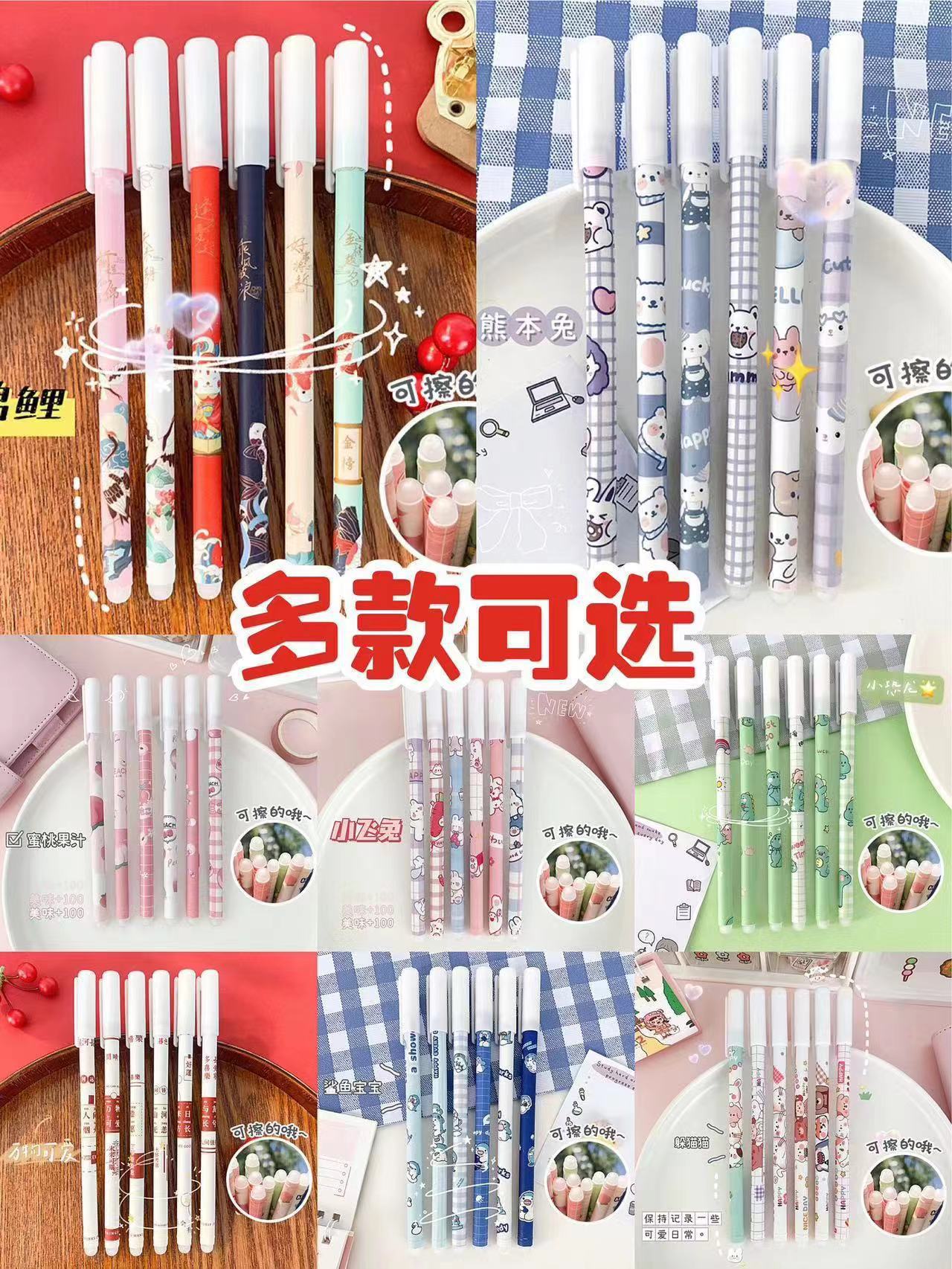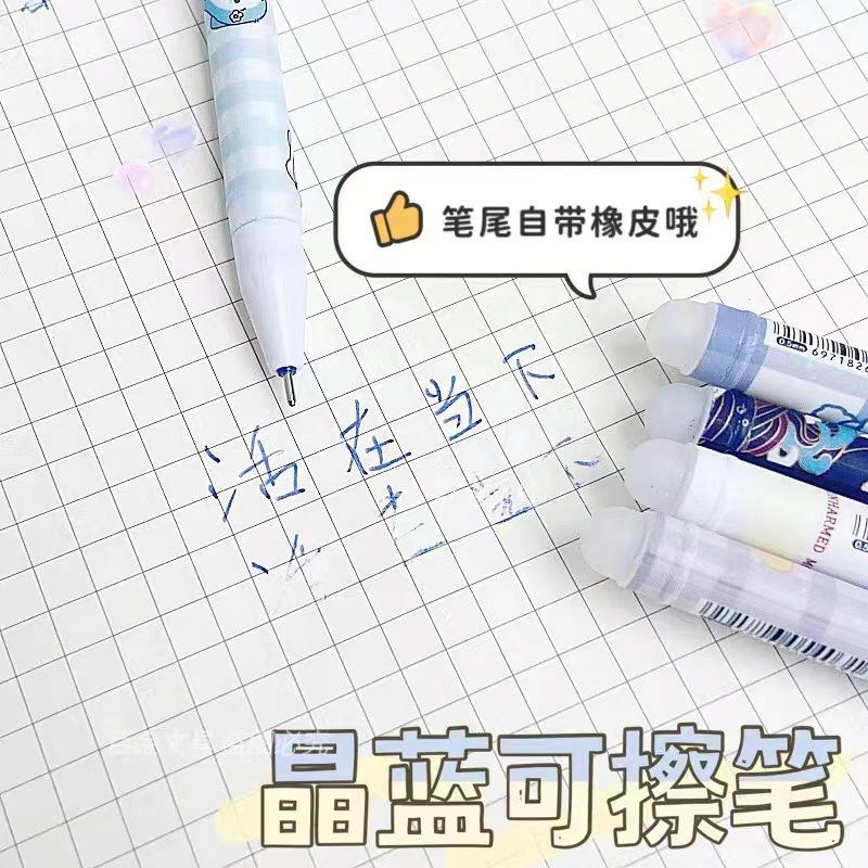 Bolígrafo borrable térmico de dibujos animados creativo papelería para estudiantes color azul cristal 0.5mm fácil de borrar bolígrafo neutro venta al por mayor