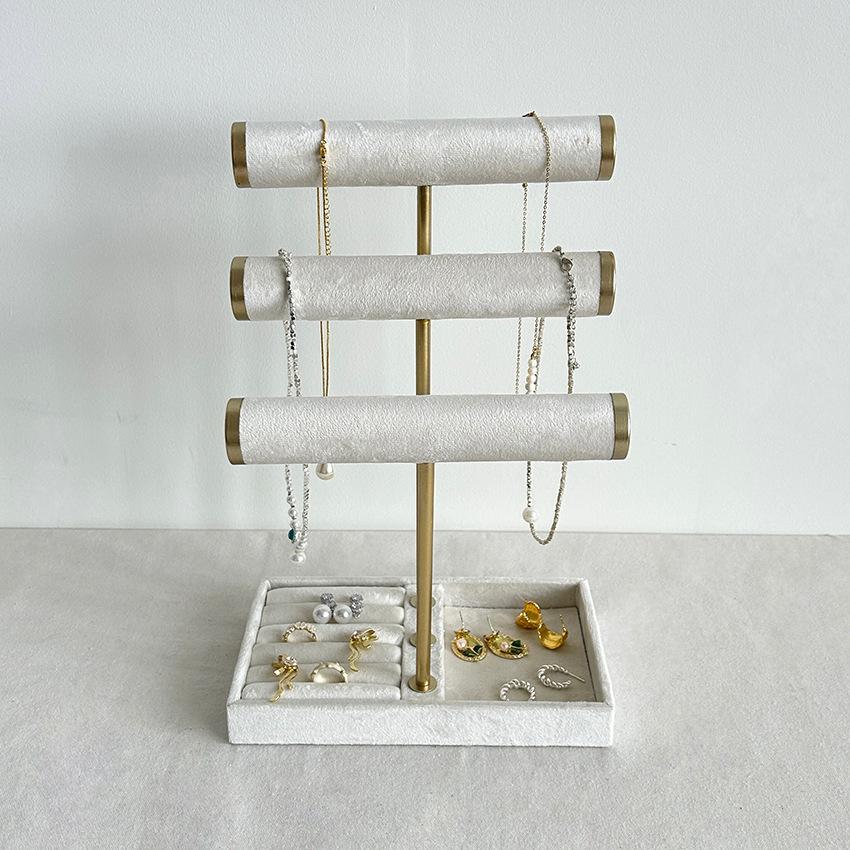 Soporte de Exhibición de Joyería Multifuncional de Cuatro Capas de Terciopelo Blanco de Venta Caliente Transfronterizo