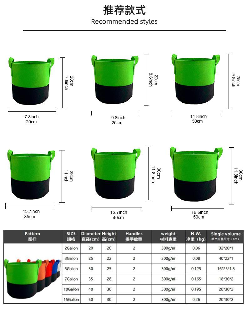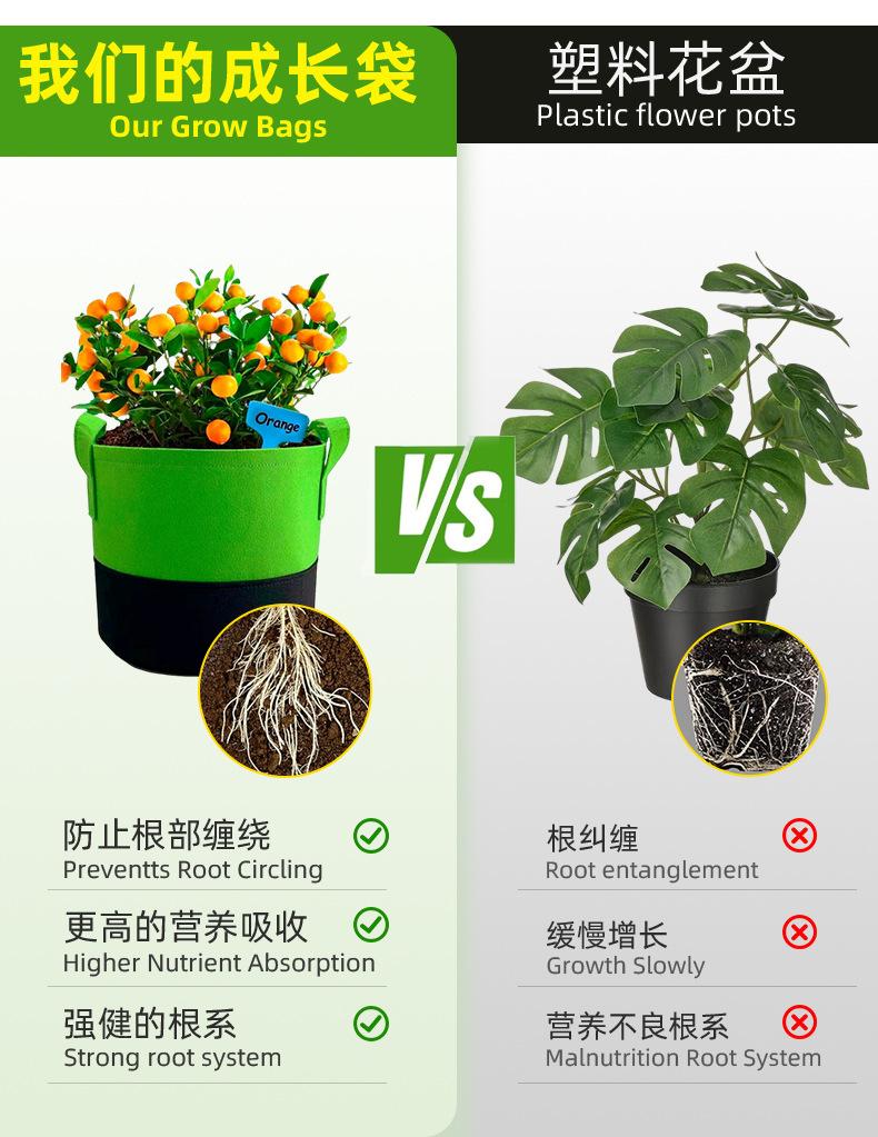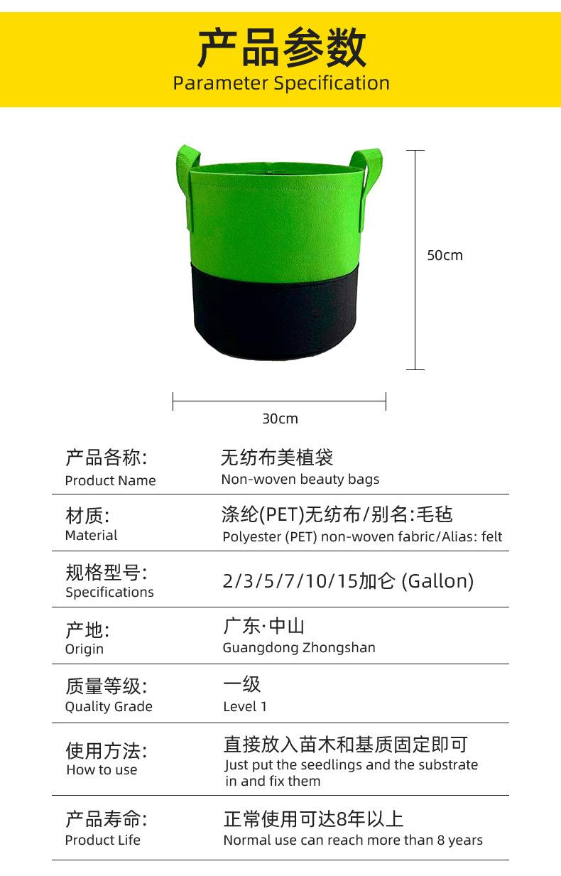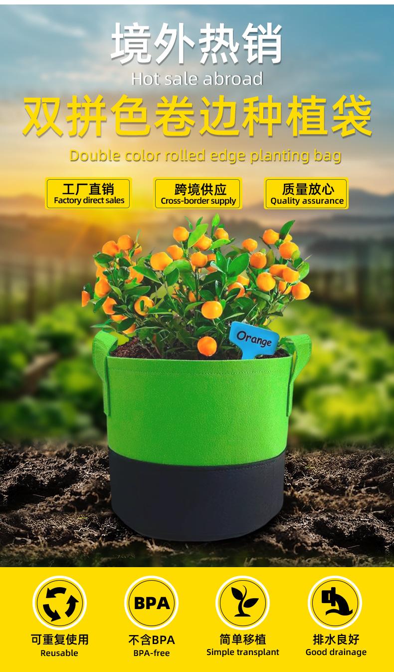 Bolsa de Plantación Sijing Doble Color Borde Enrollado Bolsa de Plantación de Belleza Transfronteriza Bolsa para Plantar Árboles Bolsa para Semilleros de Flores Fieltro No Tejido Bolsa para Plantas