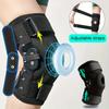 Rodillera de soporte de placa de acero para escalada, doble correa presurizada, rodillera de placa de acero, soporte de bisagra amortiguadora, rodillera antispray con logo