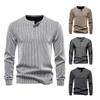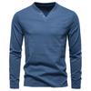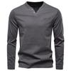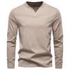 2025 Otoño Nuevo Camiseta Casual de Hombre Talla Europea Cuello en V Manga Larga Ajuste Entallado Capa Base Camiseta Top de Algodón Puro Hombre