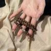 Wear wood-tone lotus bracelets in layers, Multi-layer Pomegranate Red Fu Brand Hand Bracelet, Multi-layer Aven...