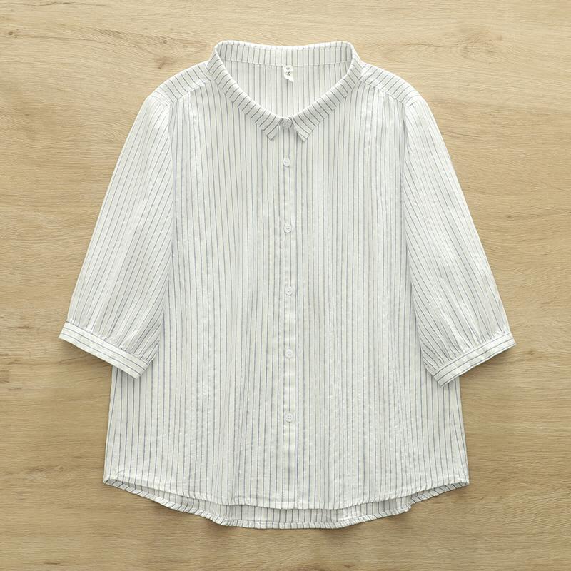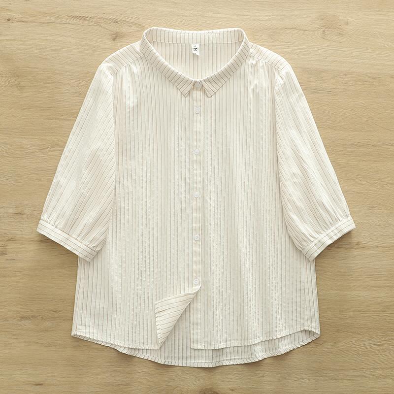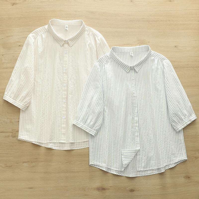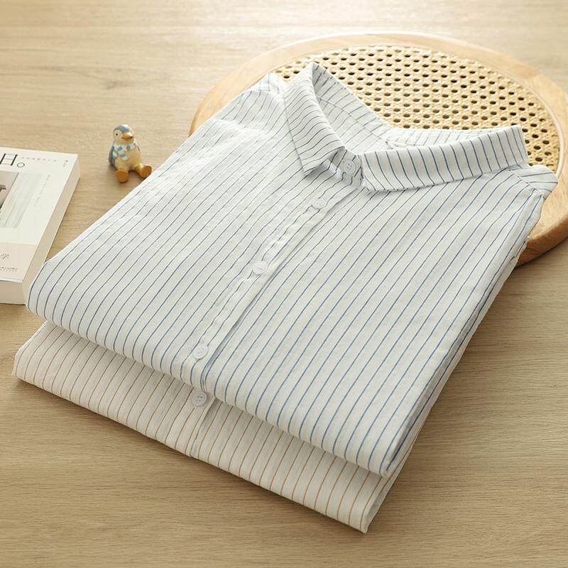 Compra 2025 Nueva Camisa de Verano Rayada para Mujer Algodón Puro Verano Holgada Manga Corta Hilo de Doble Capa Camisa Top para Mujer al por mayor en Joom.pro