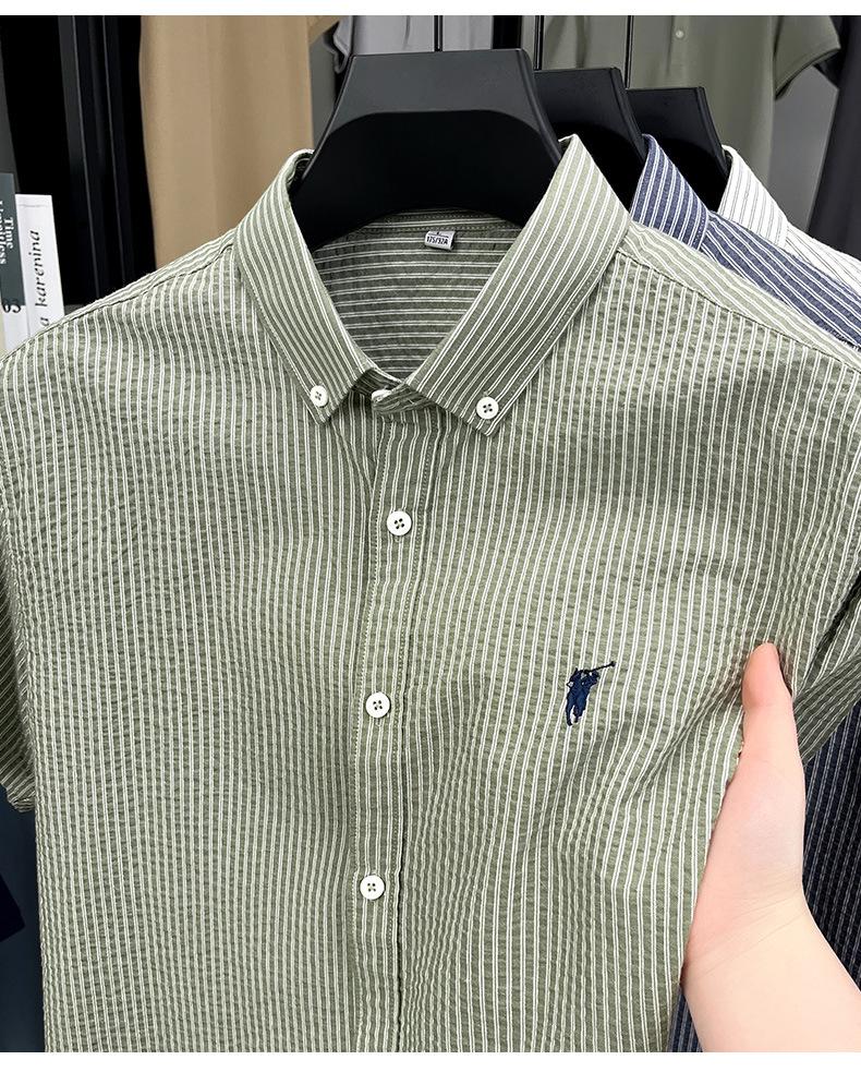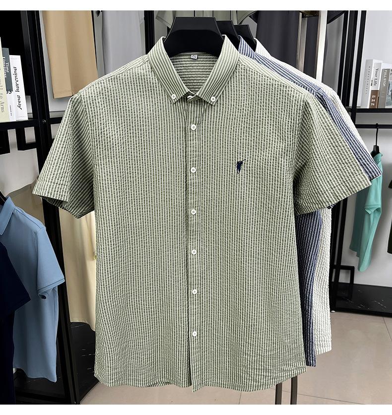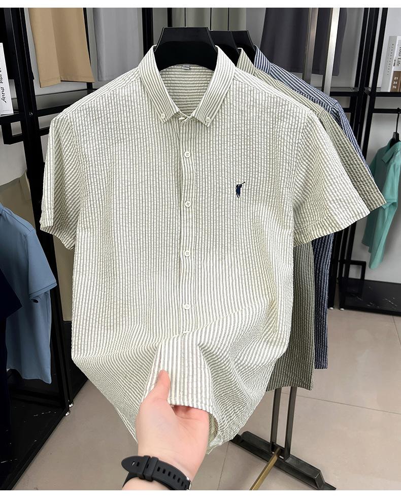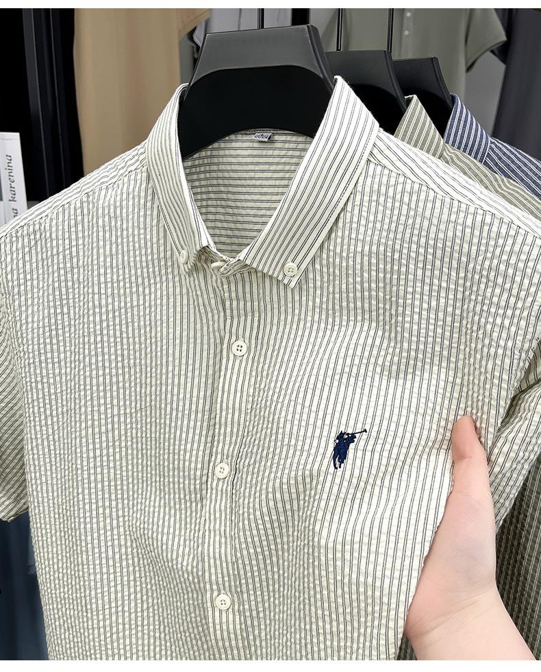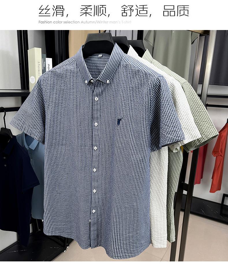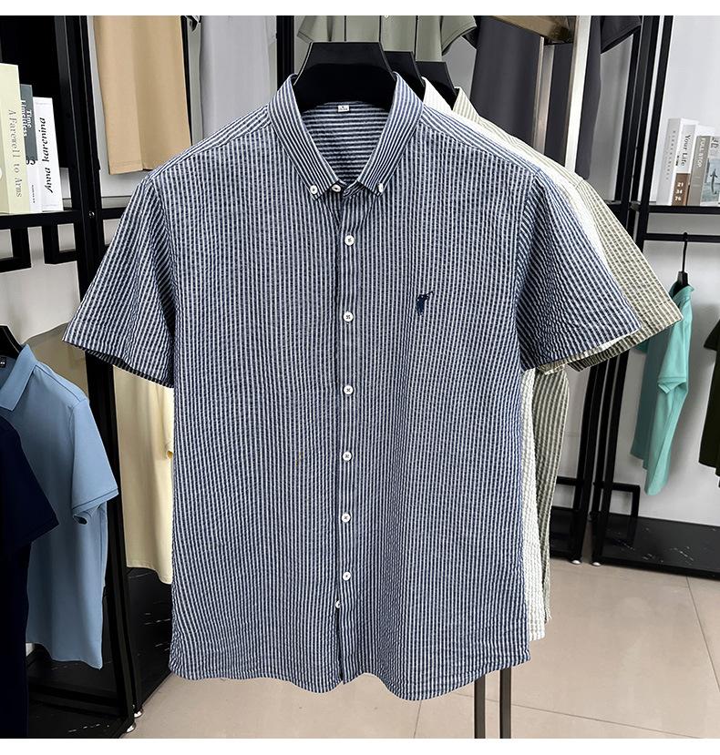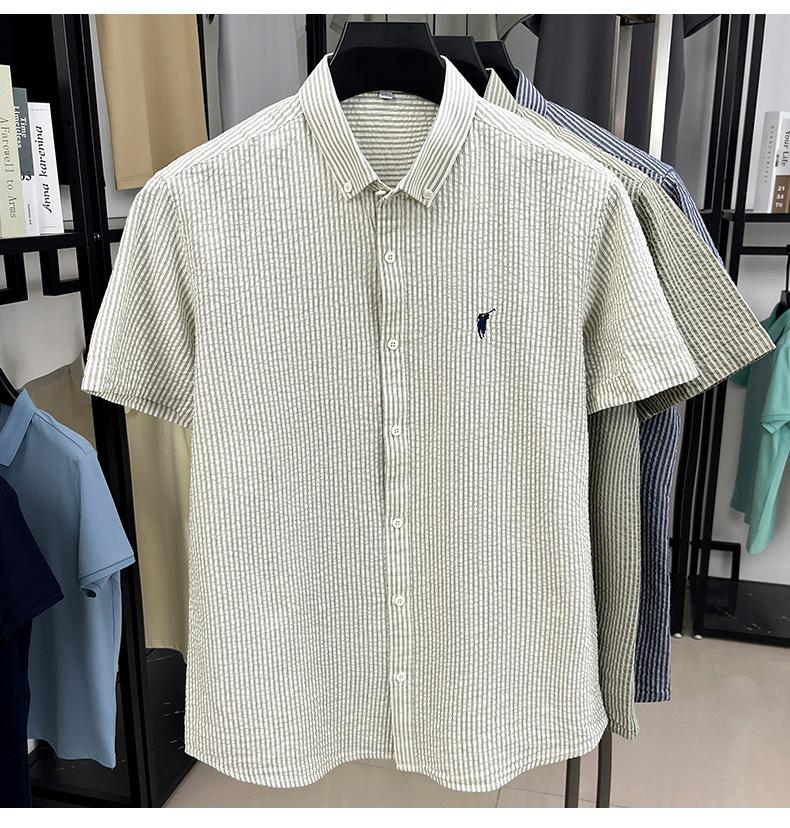 Compra Camisa de Algodón Puro de Manga Corta para Hombre Verano 2025 Alta Calidad Delgada Business Casual Media Manga Logotipo de Pony Camisa a Rayas para Hombre al por mayor en Joom.pro