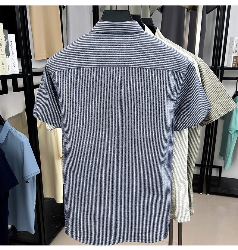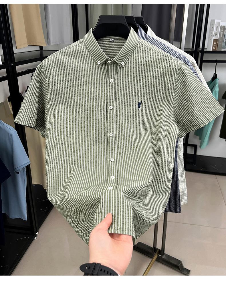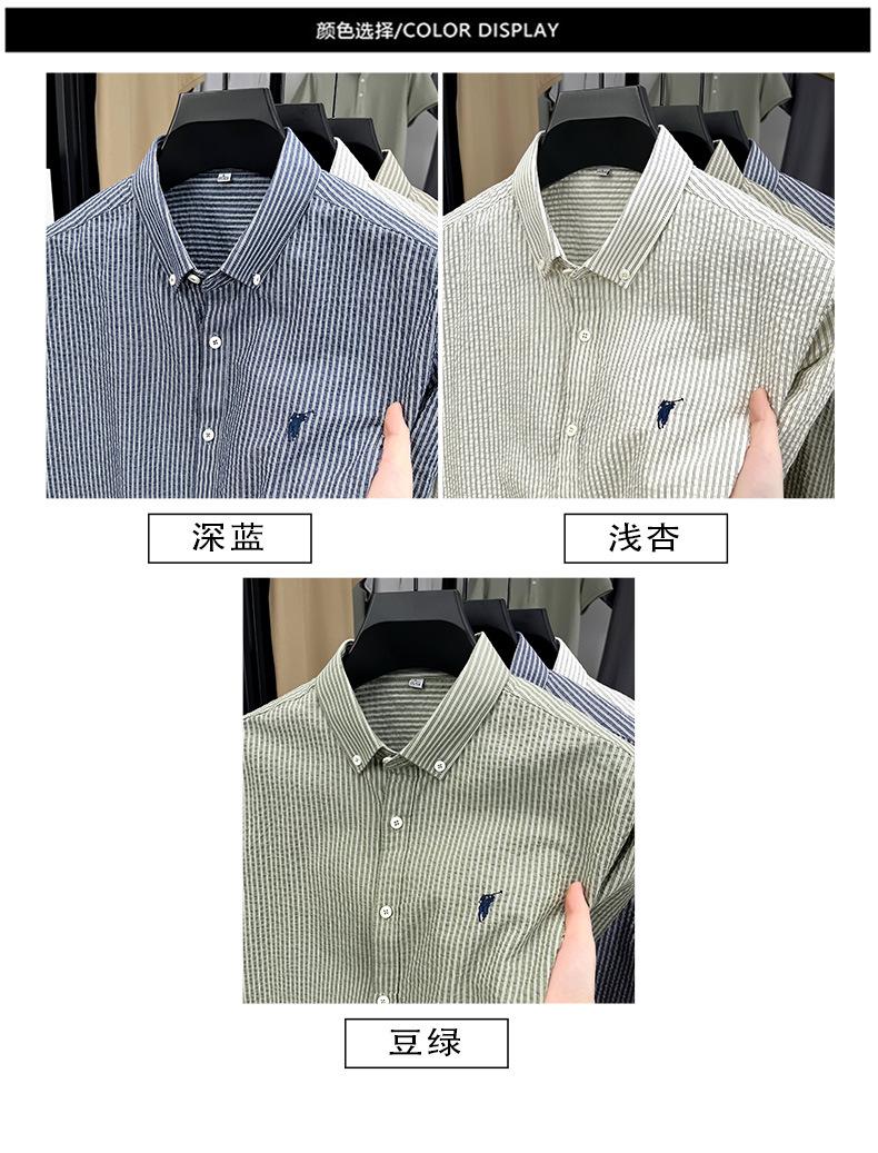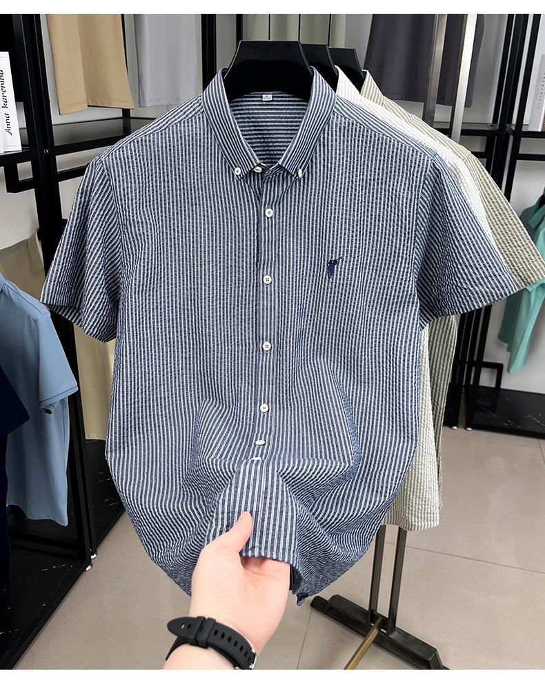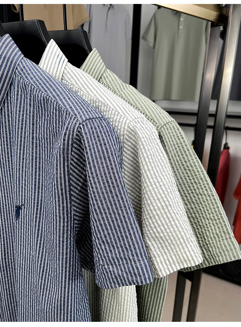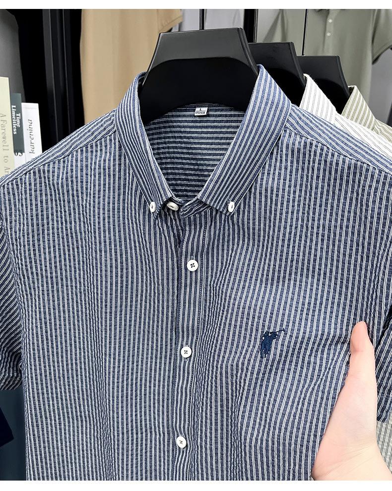 Compra Camisa de Algodón Puro de Manga Corta para Hombre Verano 2025 Alta Calidad Delgada Business Casual Media Manga Logotipo de Pony Camisa a Rayas para Hombre al por mayor en Joom.pro